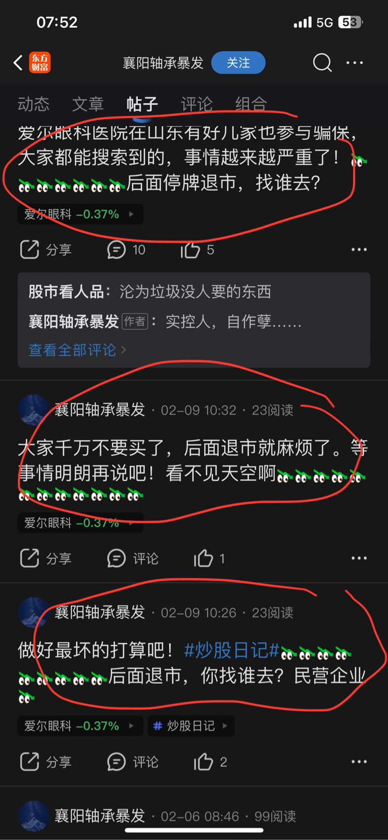 $爱尔眼科(SZ300015)$ 襄阳轴承暴发!你居然在我贴下发平论!你想疯了!昨天没时间看!臧待够深!很专业!。 但是我觉得你很可怜!多的我不想说