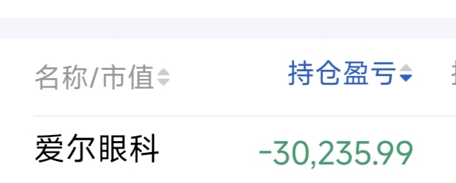 在爱尔眼科单只股票类计亏损已经超3万了,把我今年的总盈利都快亏回去了,你们亏损了多少。