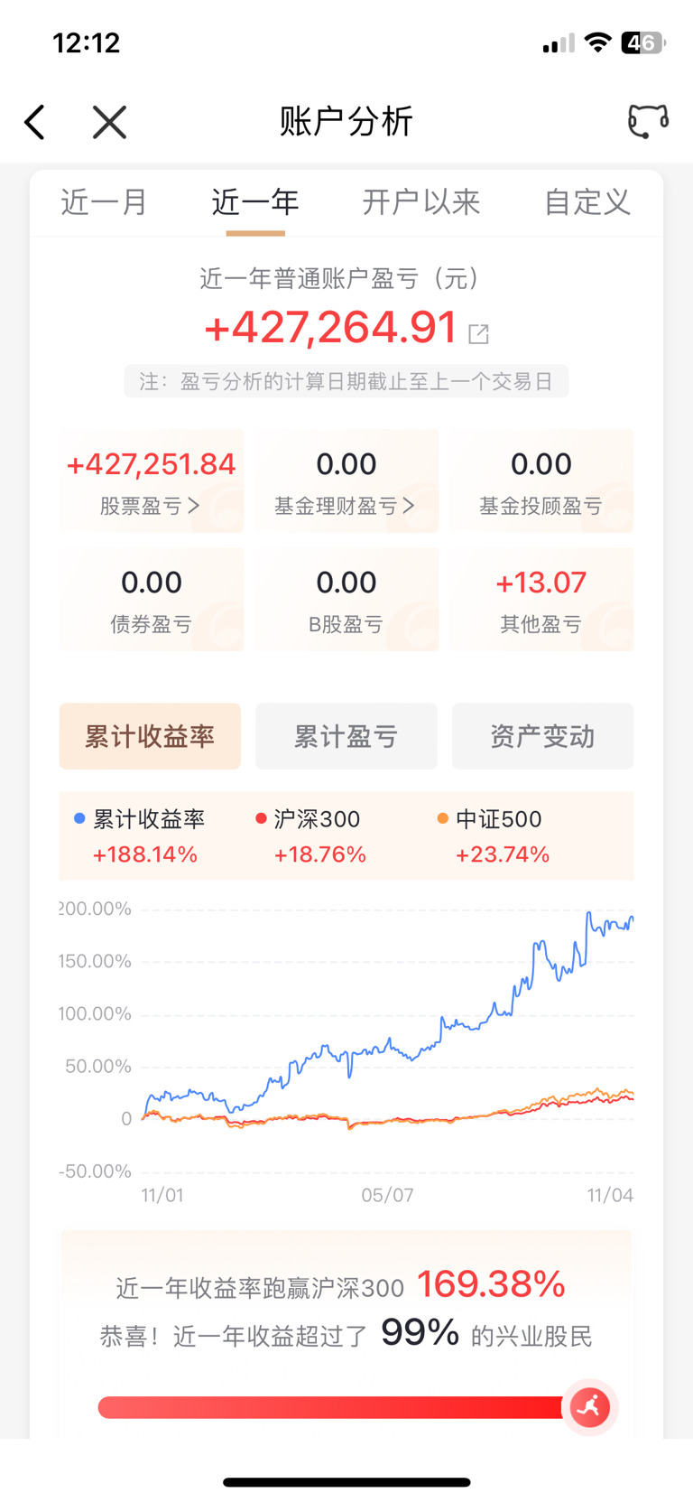 虽然回调一个多月了但还是要感谢北陆,几个股来回高低切近一年其中兴业证券一个小账户