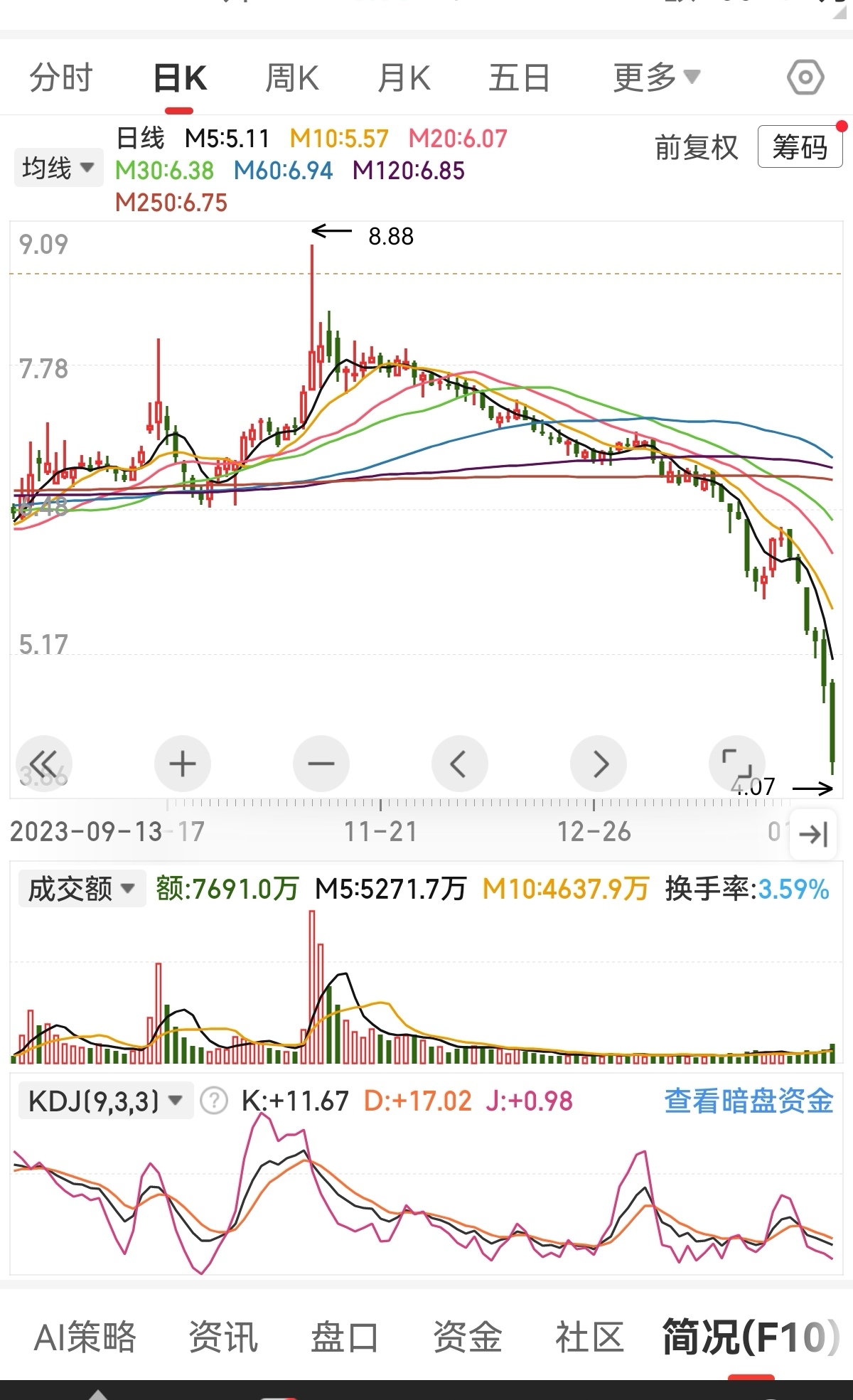 $北陆药业(SZ300016)$ 慢刀子割肉走势,无量阴跌跌更跌,每天跌一毛几分的,跌上一年半载,后面出大阴放大量就到底了,现还远着呢,记