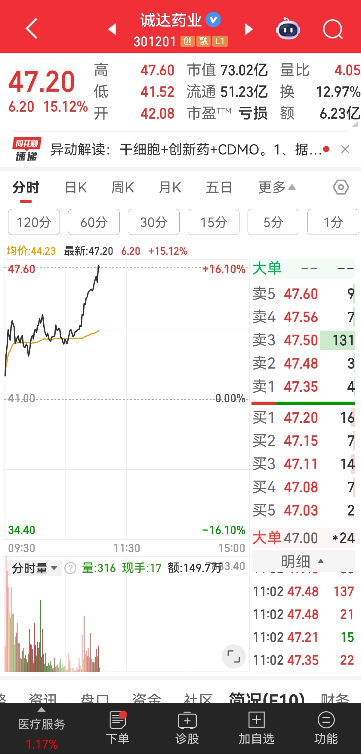 $北陆药业(SZ300016)$ 全是机构股大涨,北陆跟涨会下来,下来很快的,记