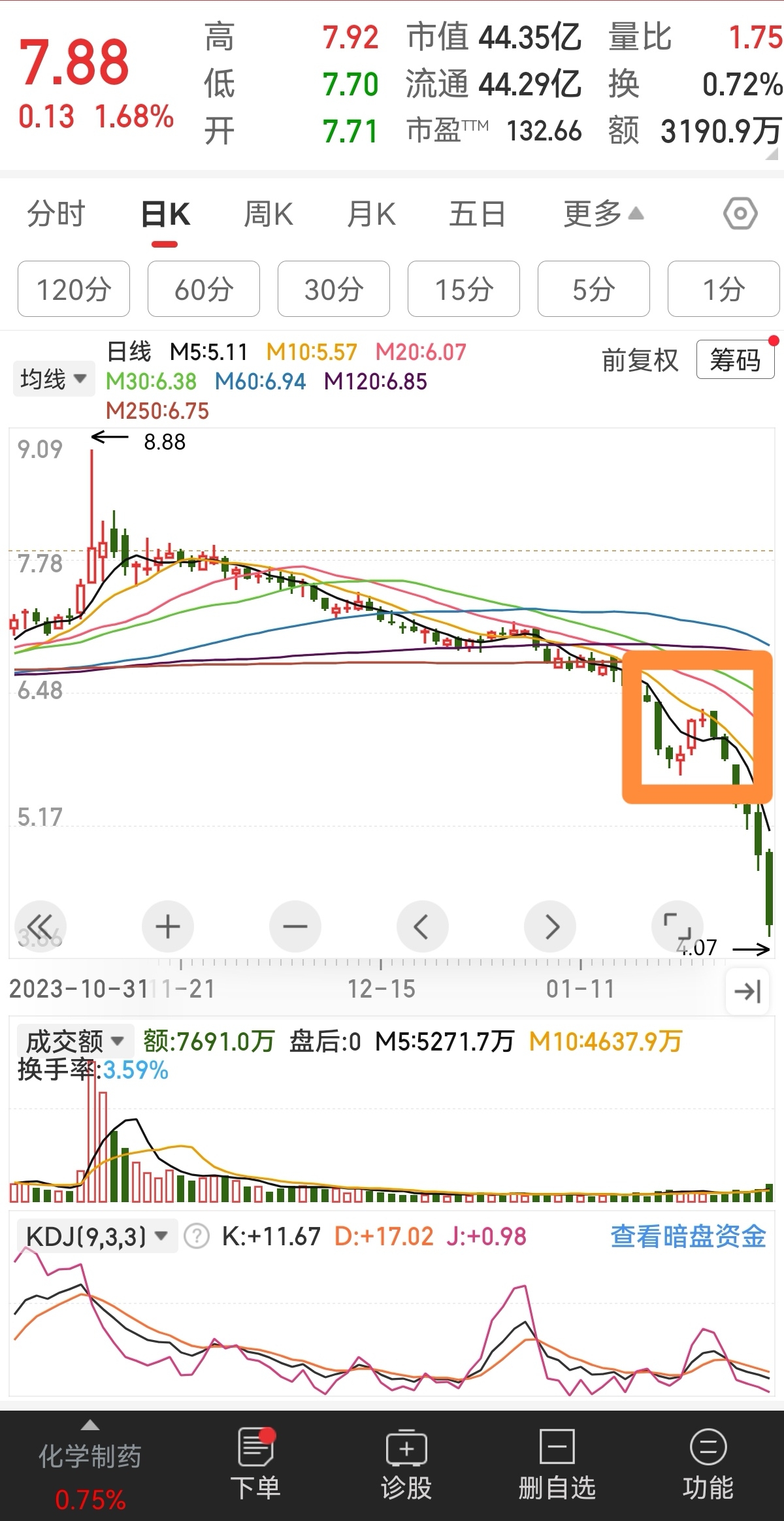 $北陆药业(SZ300016)$ 下跌中继,反弹过后还有连续大阴,记