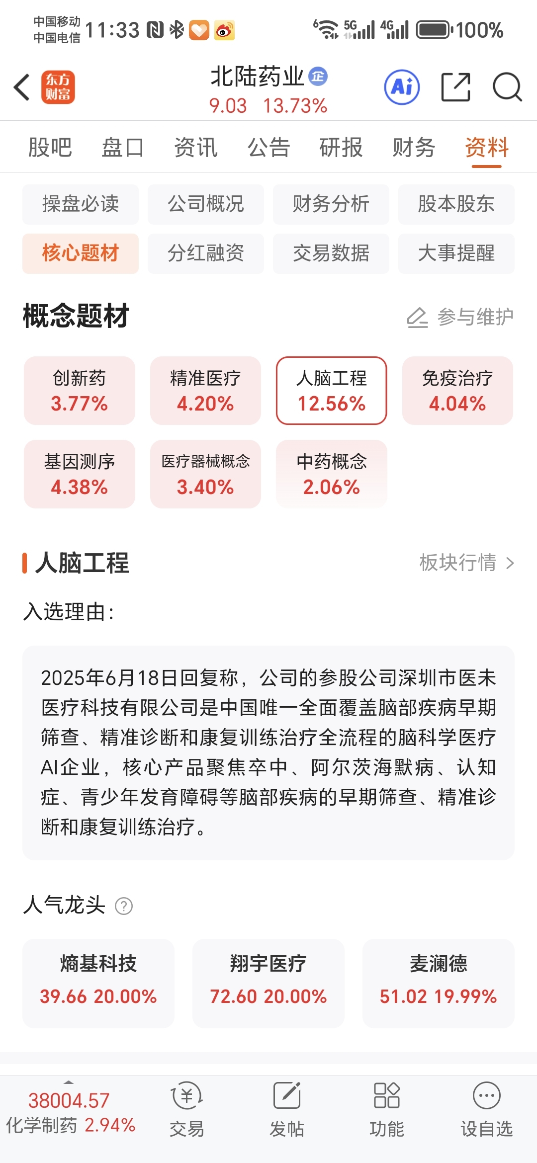 $北陆药业(SZ300016)$ 唯一一个