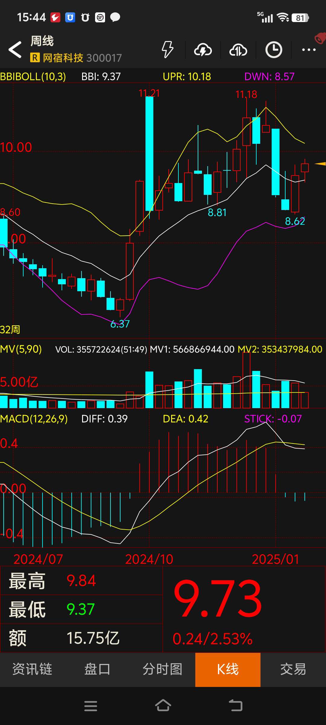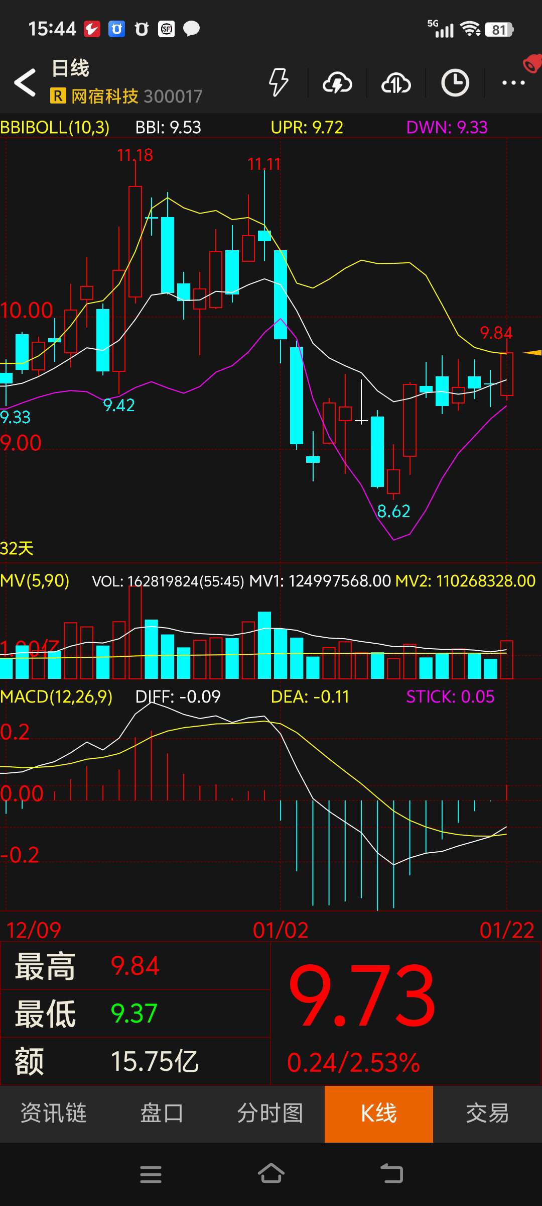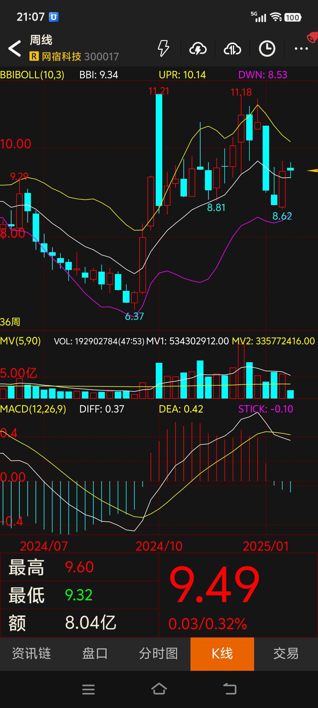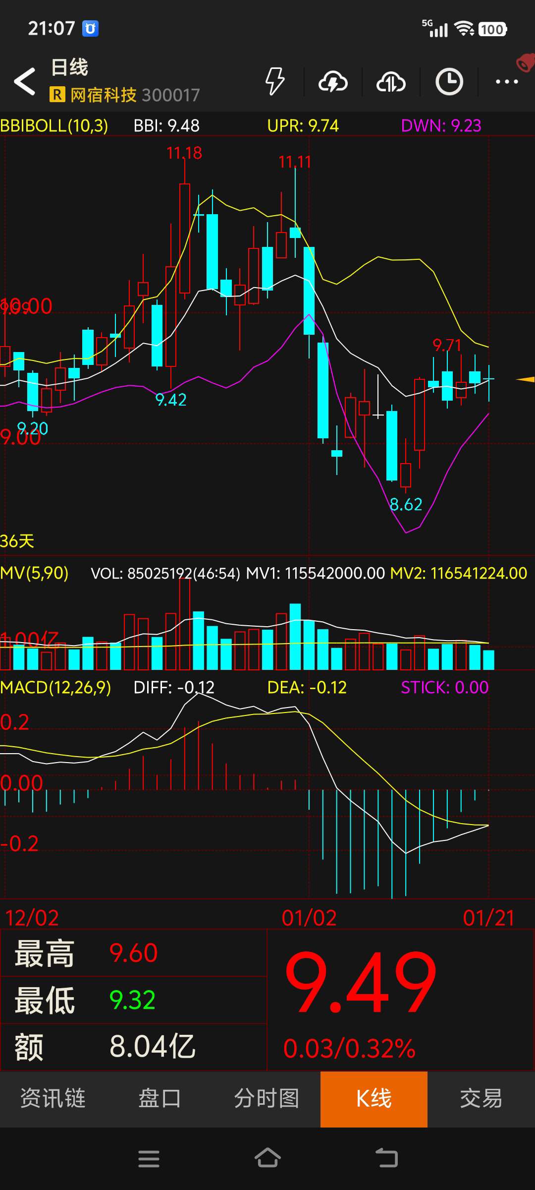 $网宿科技(SZ300017)$ 记录一下,以便后期查看历史走势,几月份才能到下轨增持。#复盘记录#
