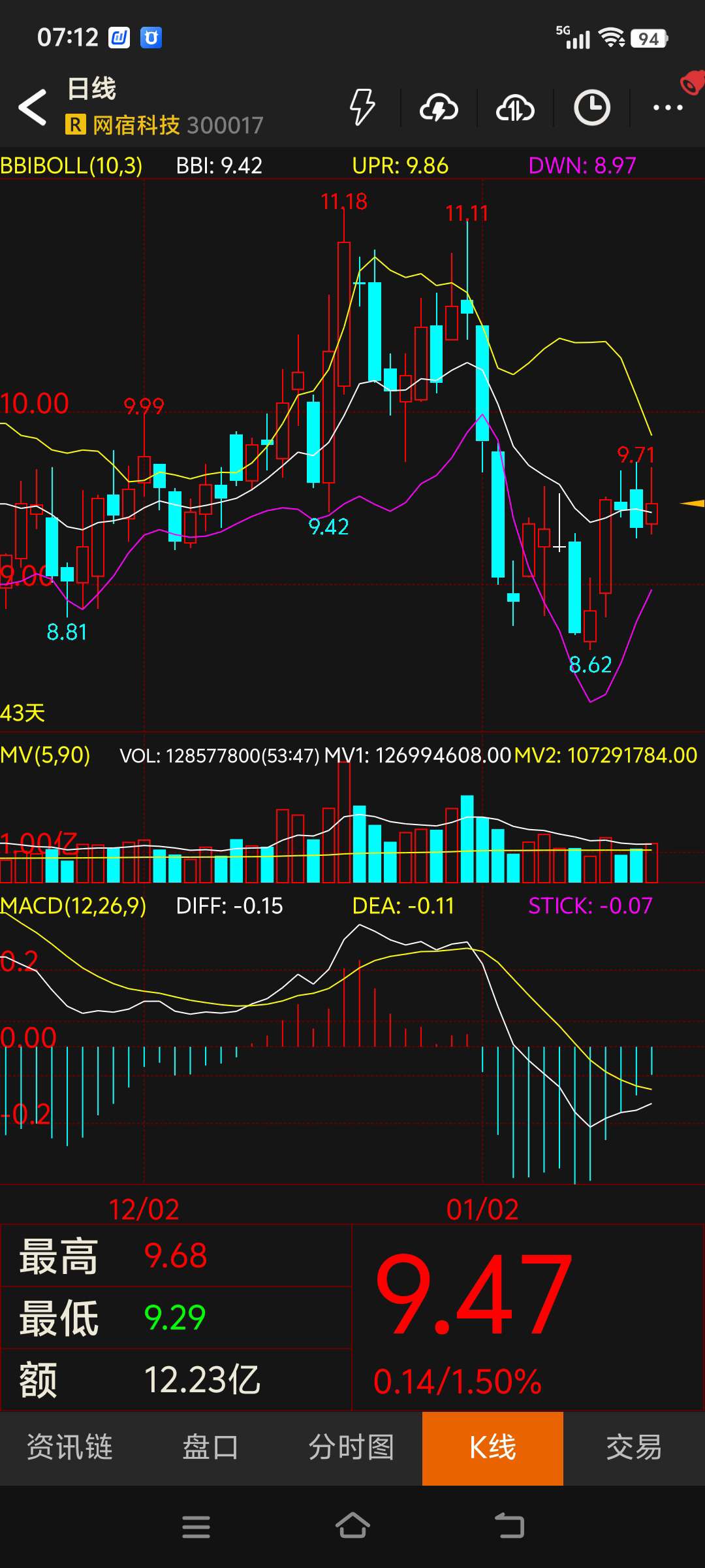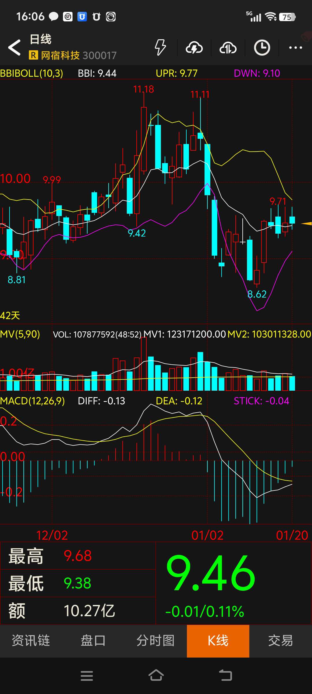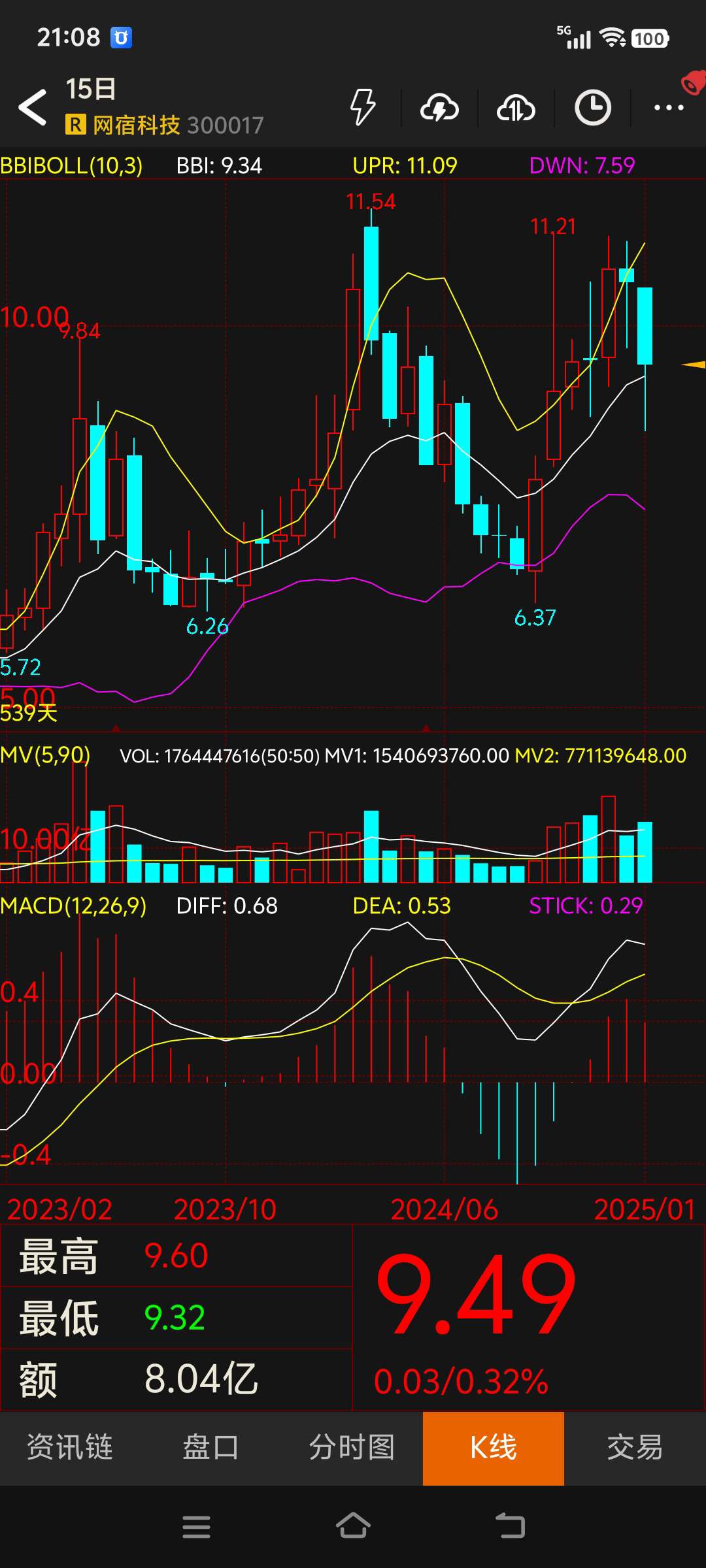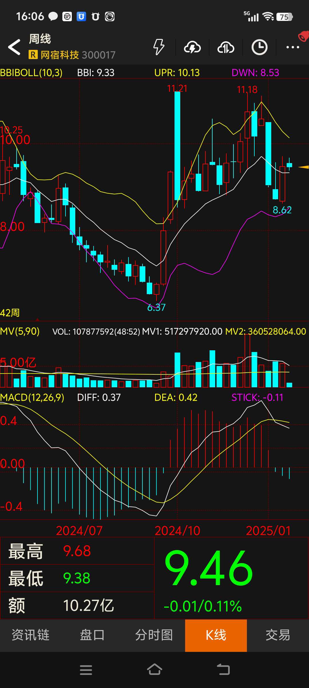$网宿科技(SZ300017)$ 记录一下,以便后期查看历史走势,几月份才能到下轨增持。#复盘记录#