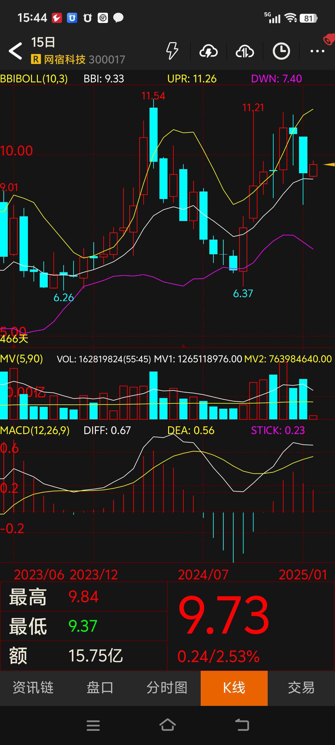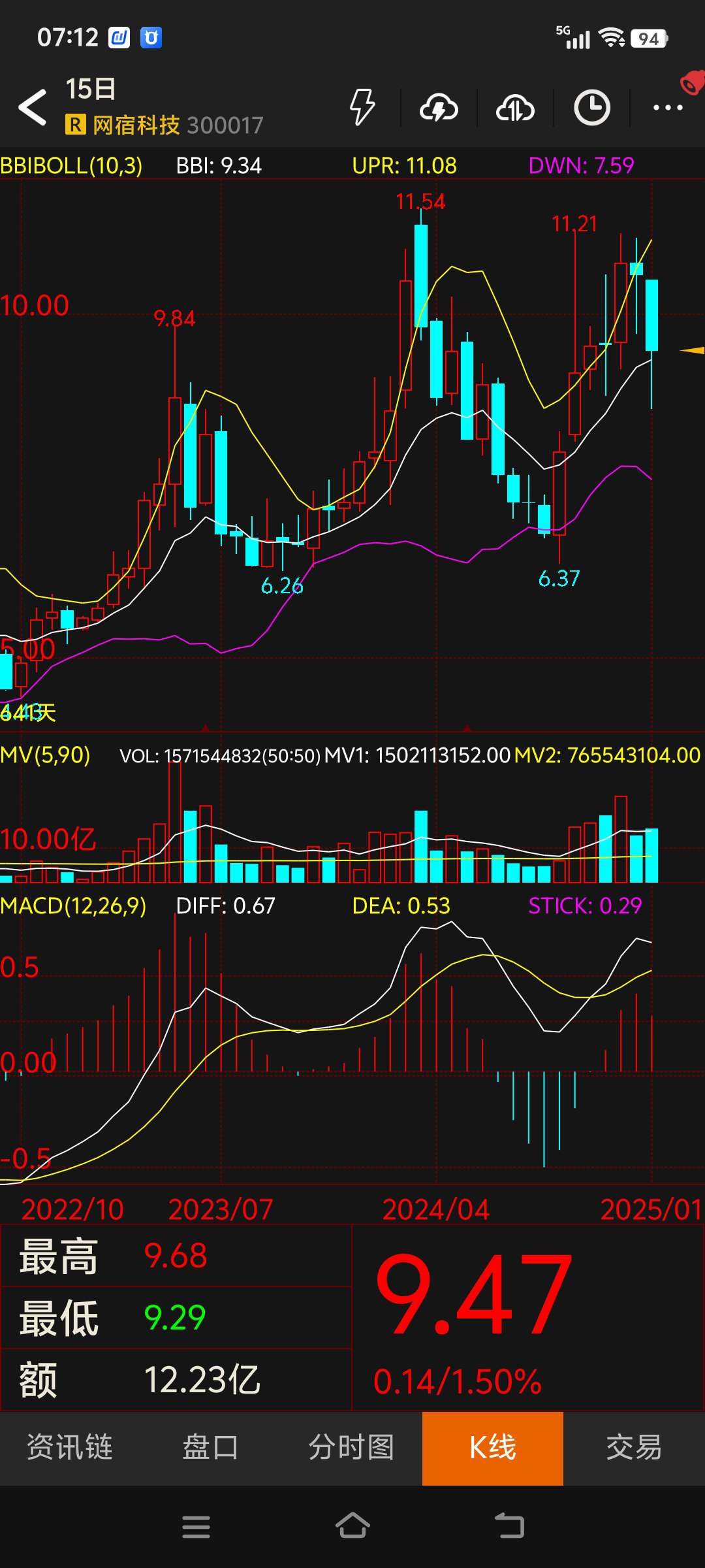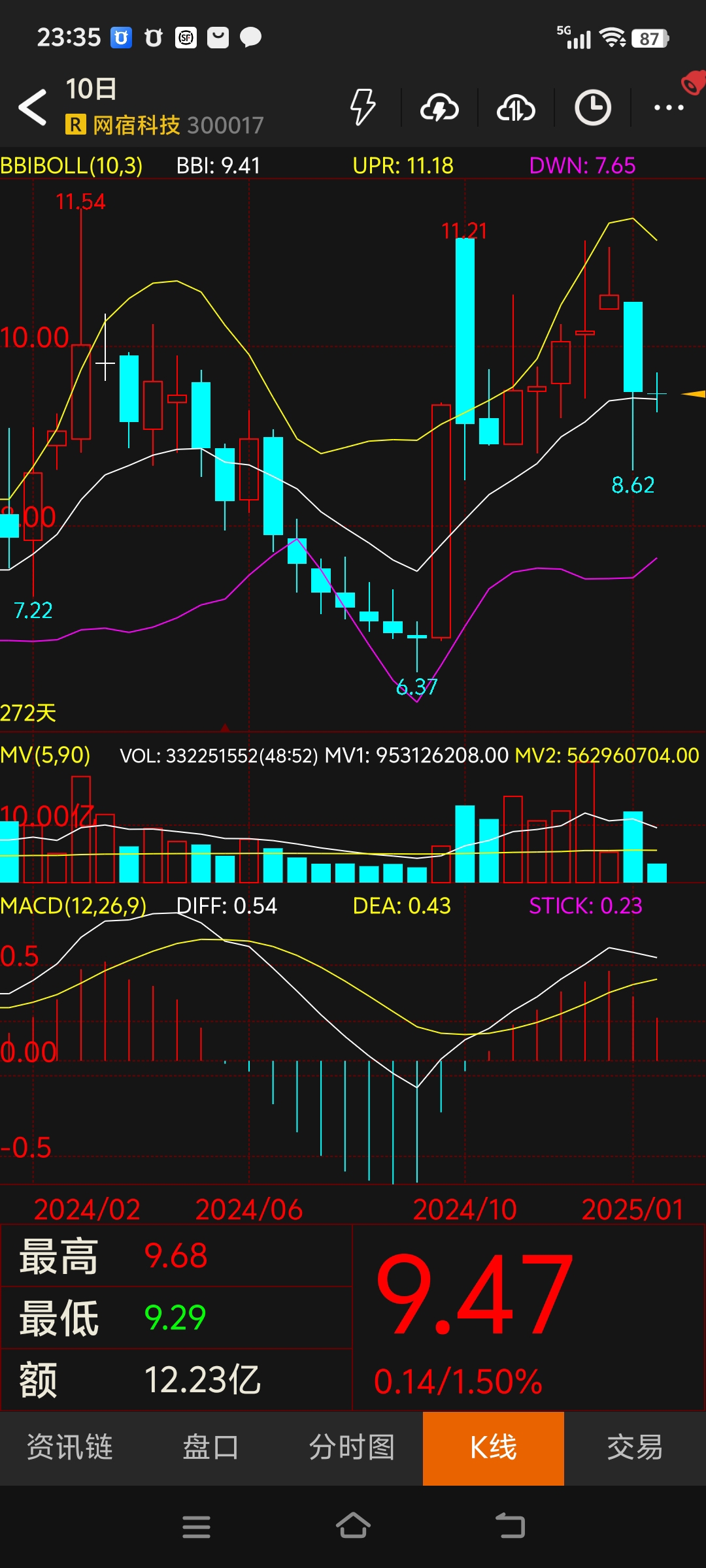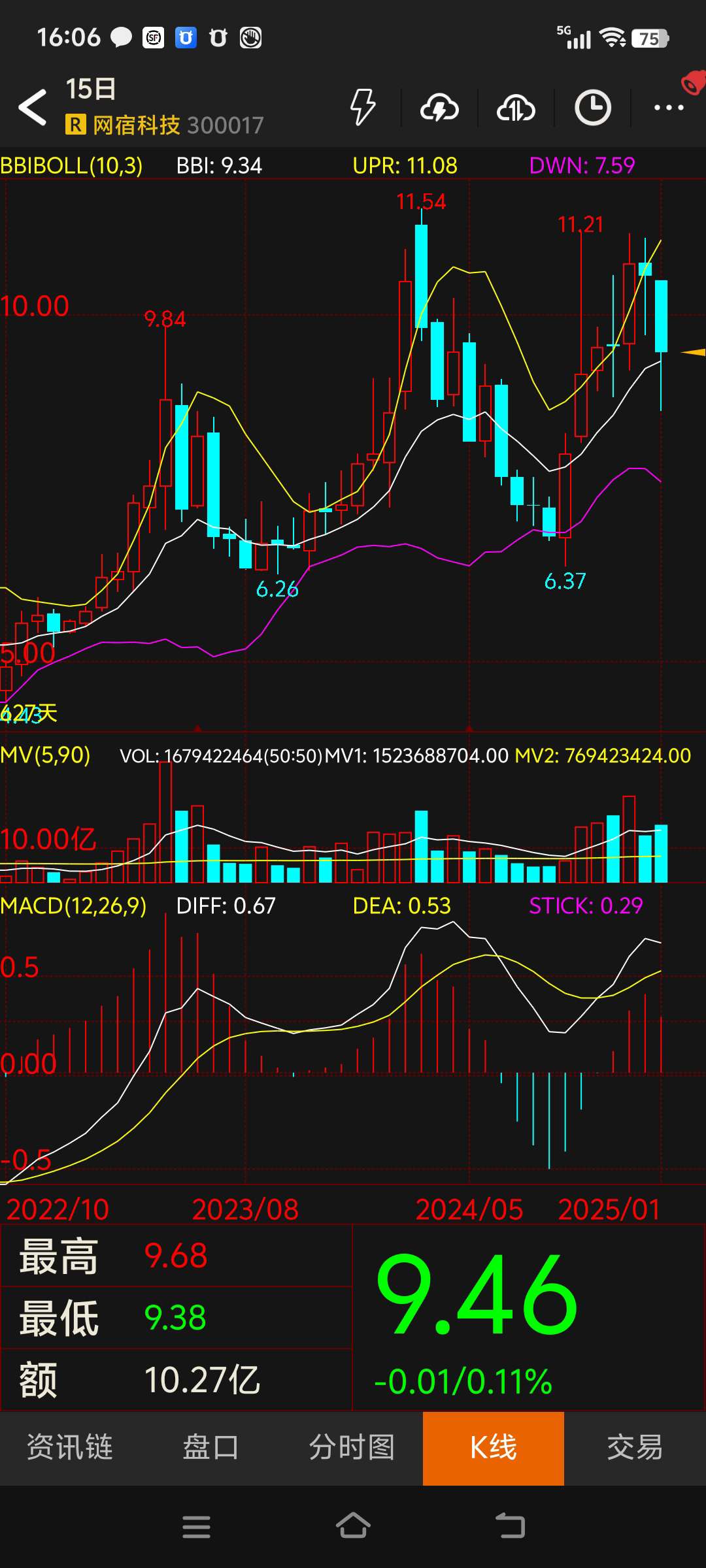 $网宿科技(SZ300017)$ 记录一下,以便后期查看历史走势,几月份才能到下轨增持。#复盘记录#