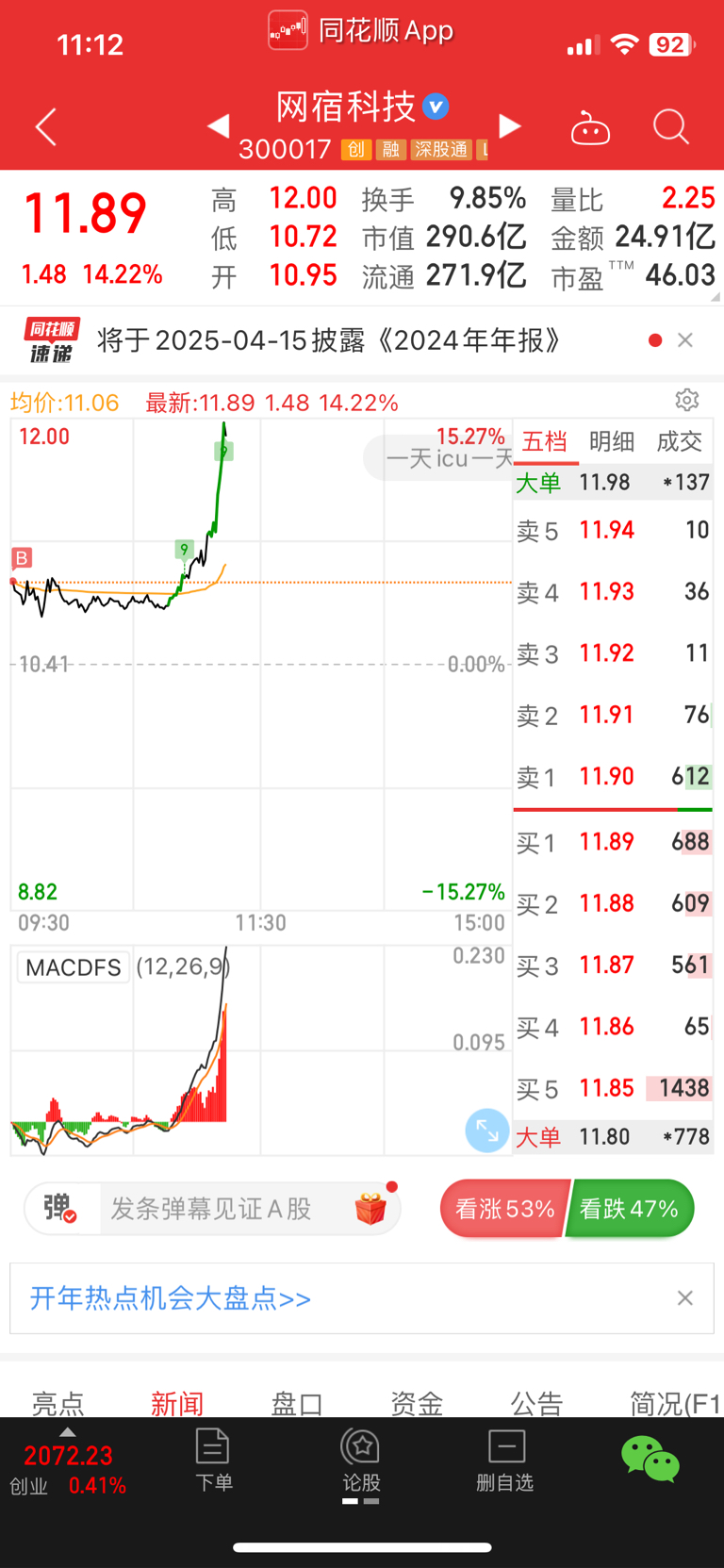 集合竞价买入30万网宿科技吃肉喽