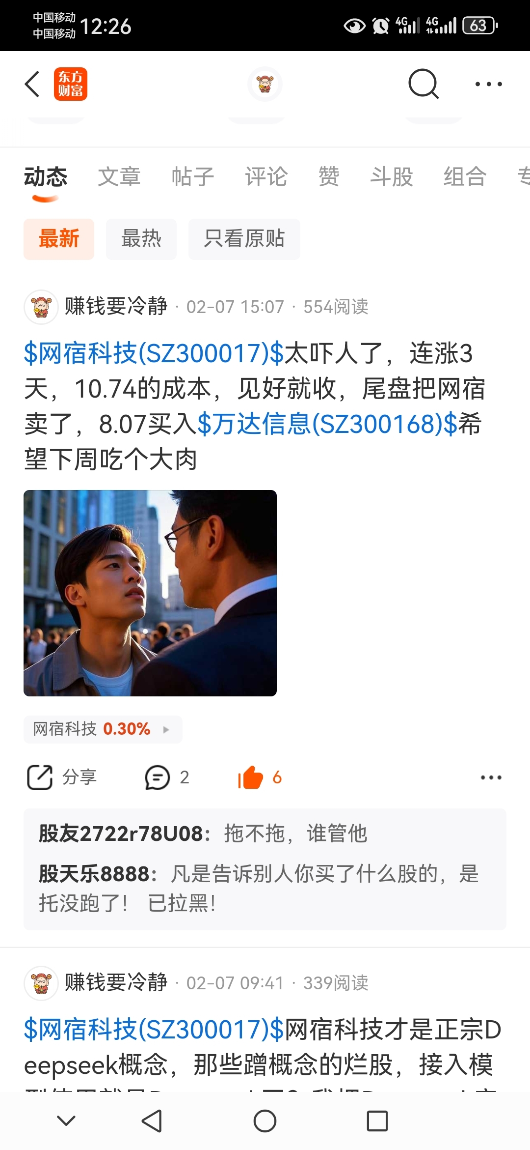 $网宿科技(SZ300017)$ 上周五我就告诉你们了,网宿本周一危险,去$万达信息(SZ300168)$ 可以吃肉,还有人说我是拖,真有意思,这基本的判断分析能力都没有,怎么能行?还玩股票,那还不等着被套呀