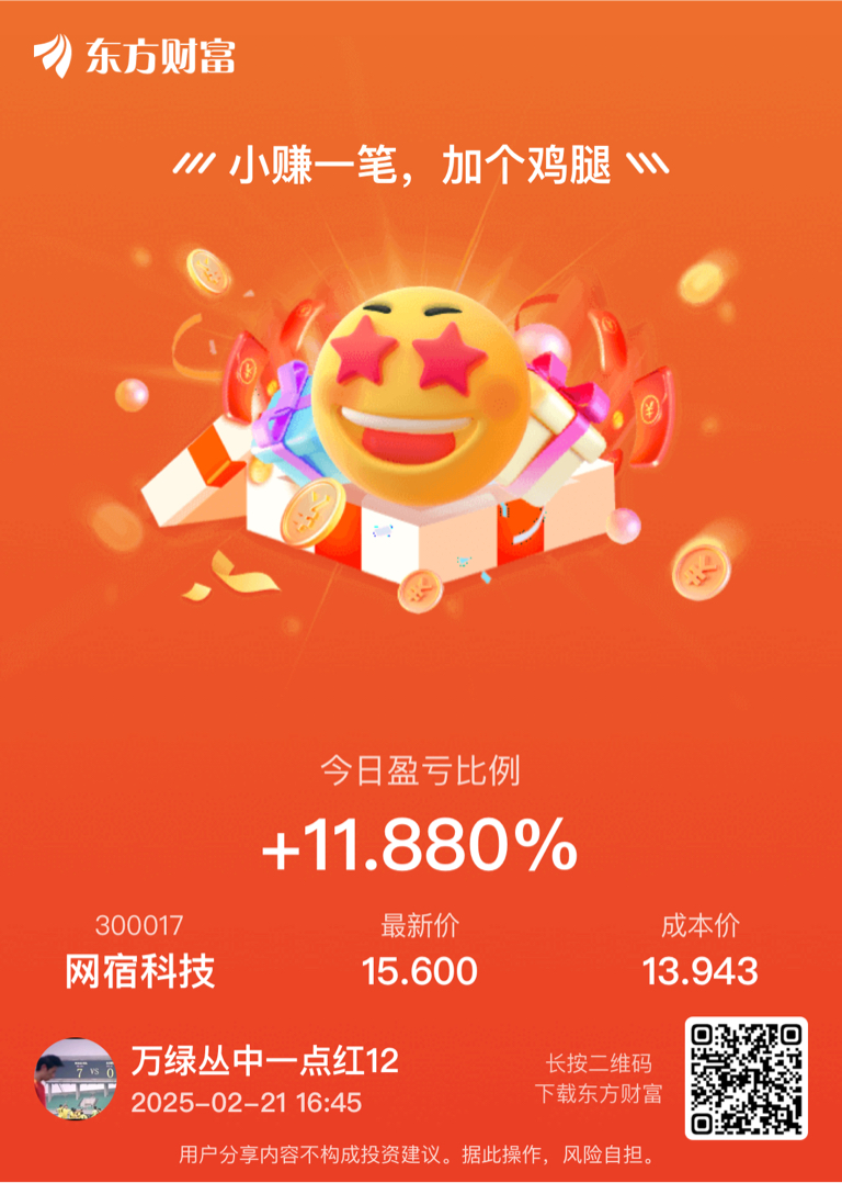 $网宿科技(SZ300017)$ 周一有机会跑路不?