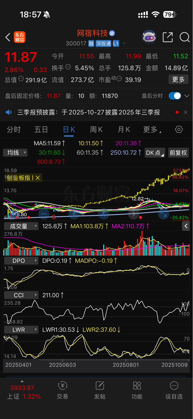$网宿科技(SZ300017)$ 跑输创业板1000点,指数一调整,又要开跌@EX小甘饼