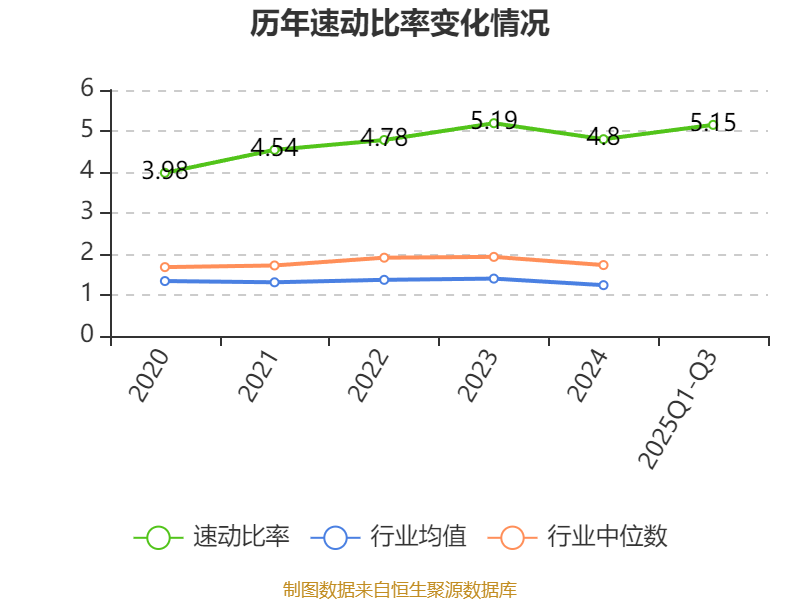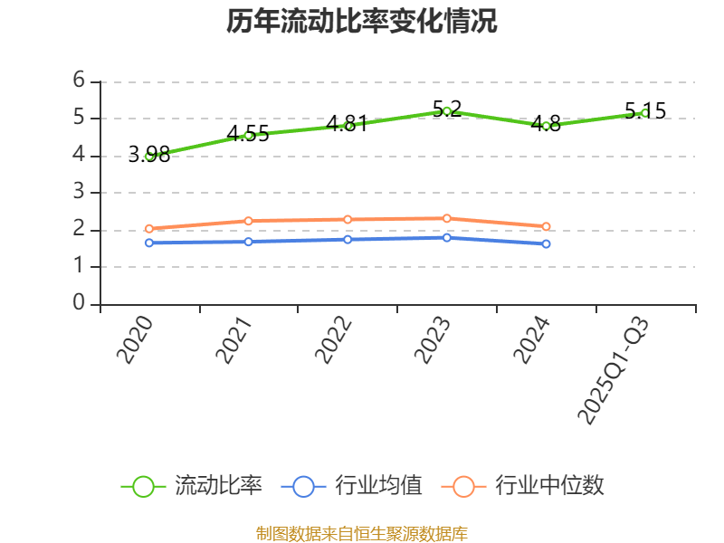 2025年前三季度,公司流动比率为5.15,速动比率为5.15。