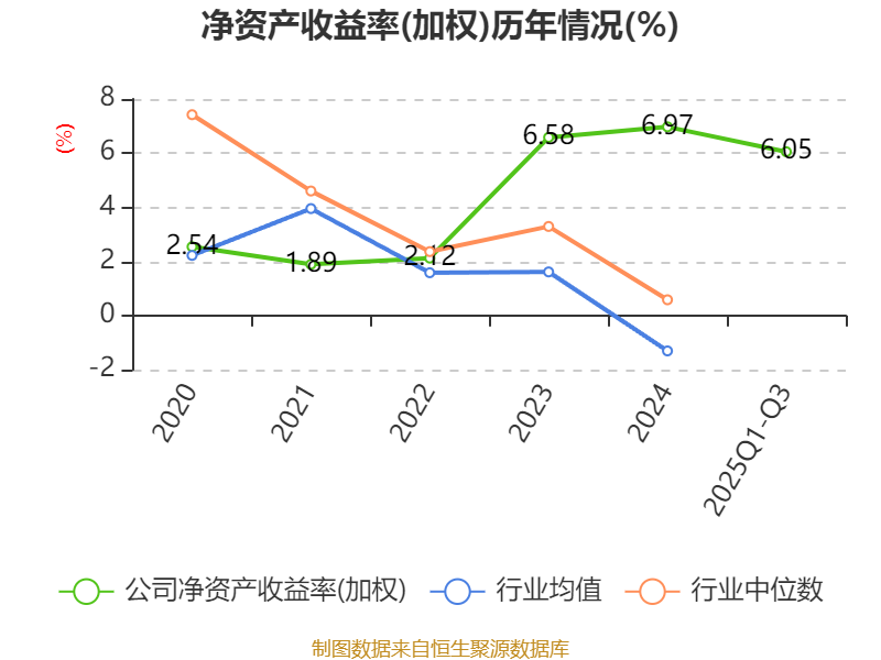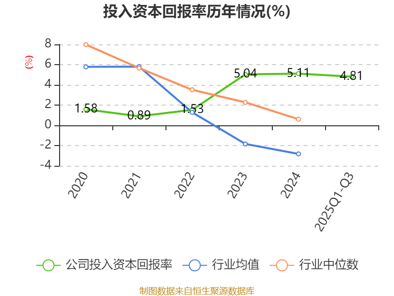盈利能力方面, 2025年前三季度公司加权平均净资产收益率为6.05%,同比上升1.58个百分点。公司2025年前三季度投入资本回报率为4.81%,较上年同期上升1.56个百分点。