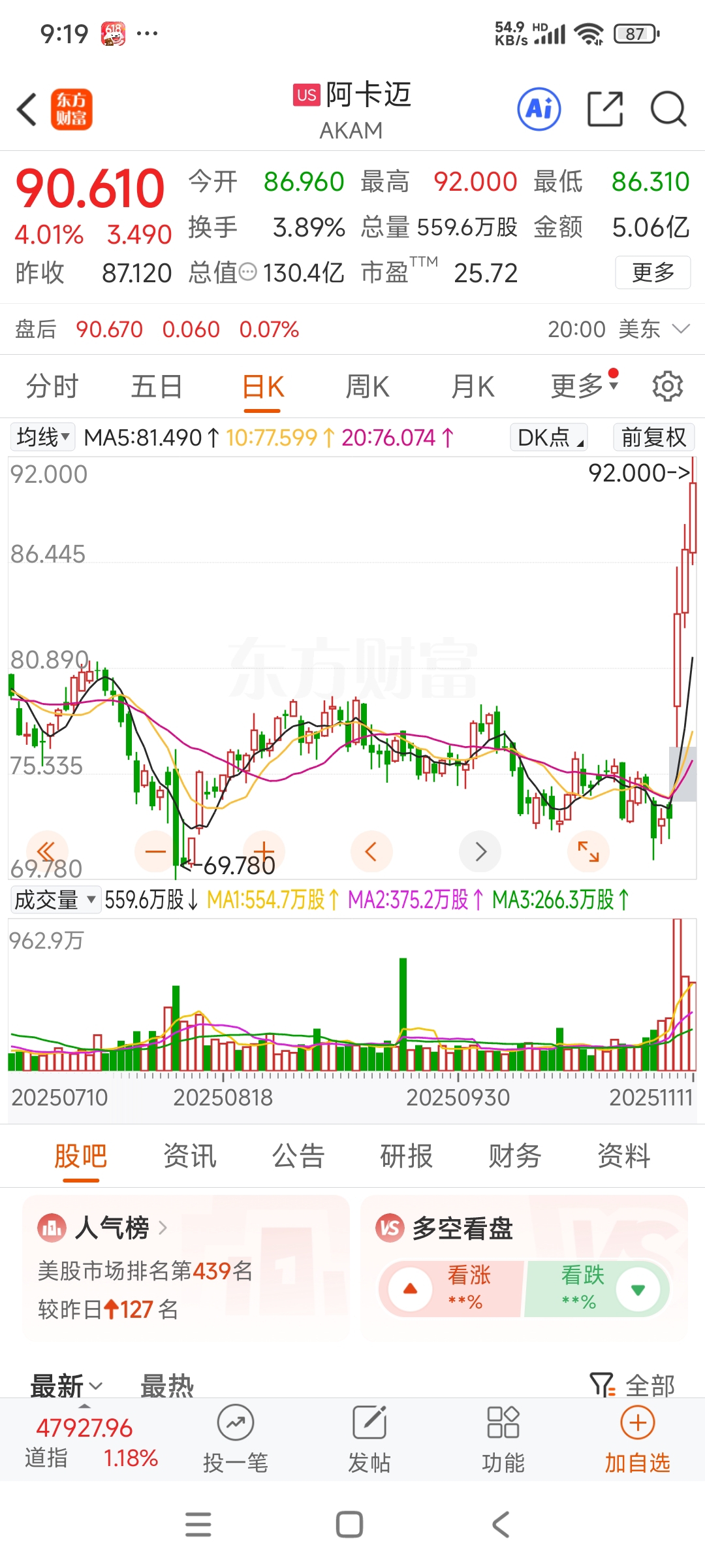 $网宿科技(SZ300017)$ 美国cdn龙头暴涨30%多,网宿是a股唯一上市的cdn龙头