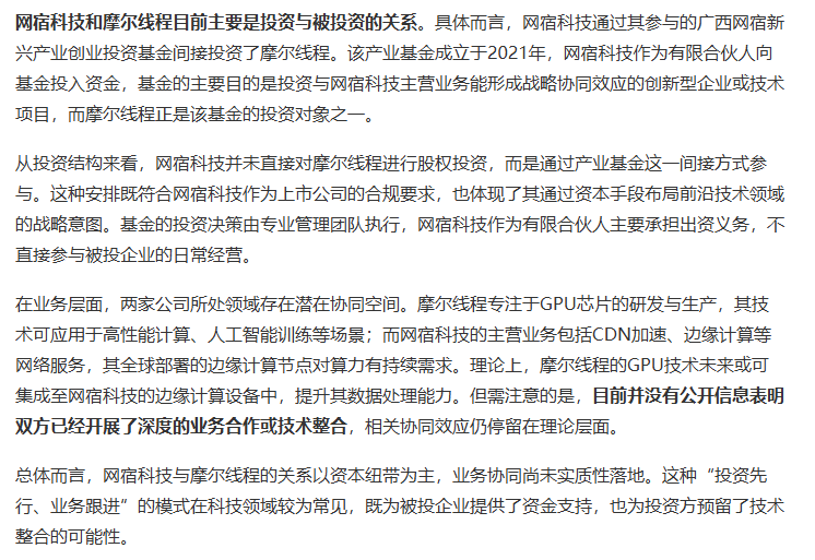 摩尔线程11月24日IPO发行,有关网宿科技通过广西网宿新兴产业创业投资基金间接