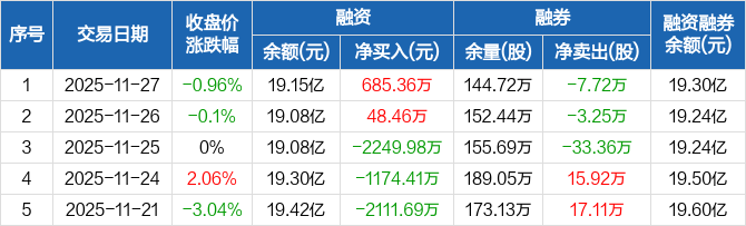 网宿科技:融资净买入685.36万元,融资余额19.15亿元(11-27)