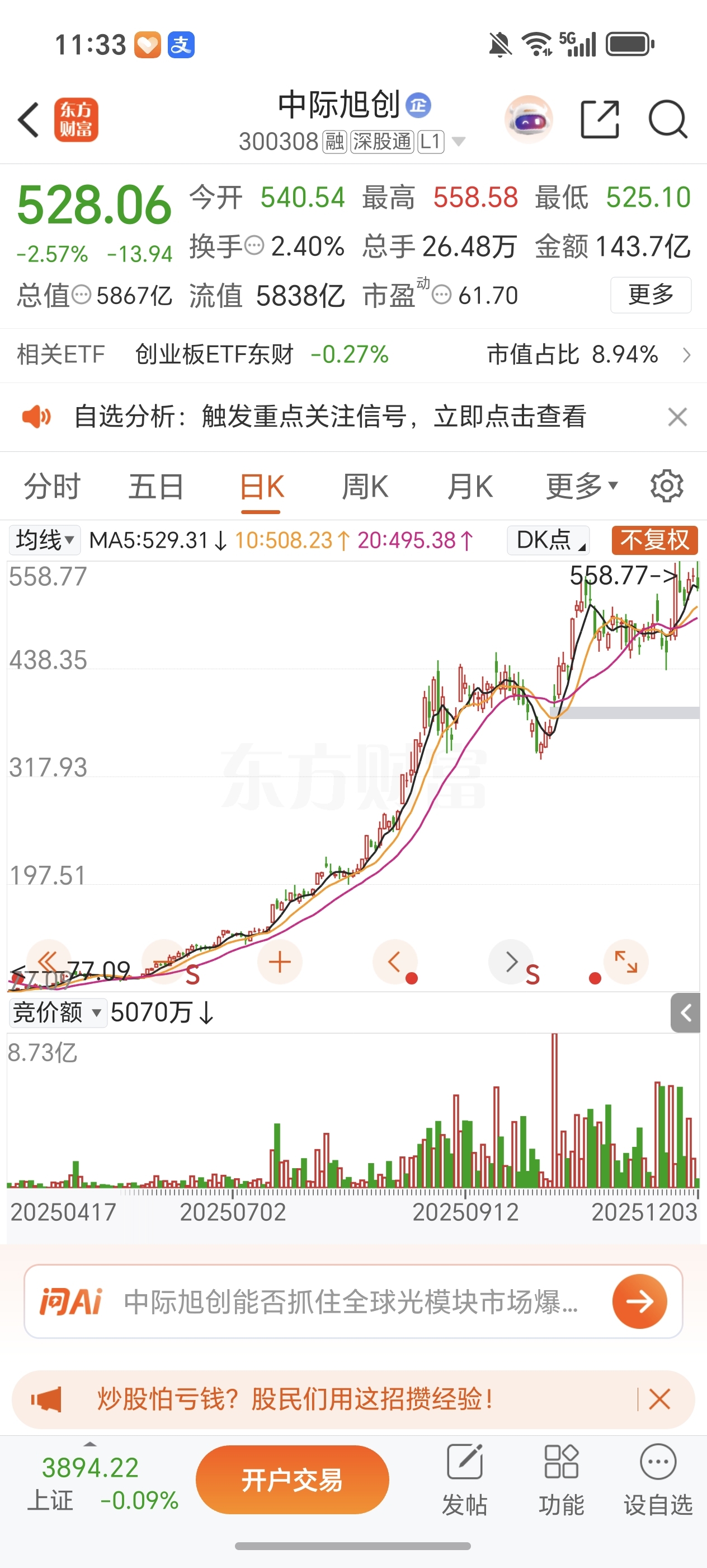 卖中际旭创,转战网宿科技云计算———15元不到你们割肉了