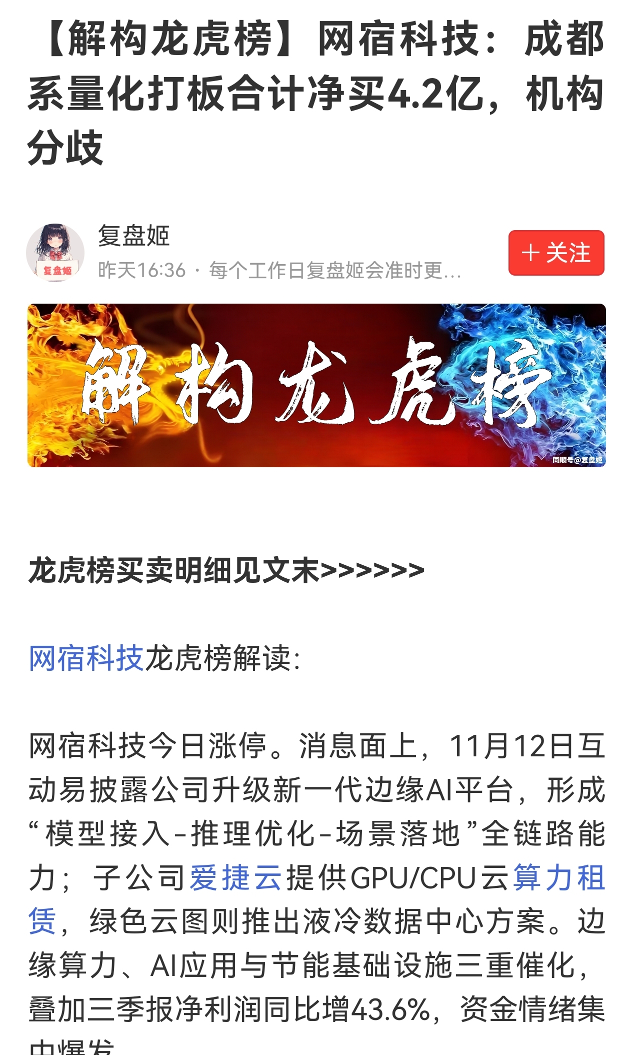 昨天的成都是4.2亿,今天都出货出完了,没有,网宿科技,很难有大作为,但不知道股