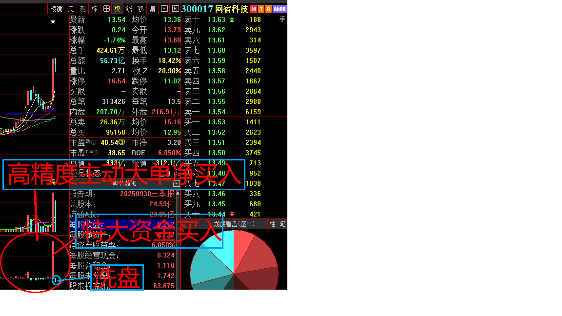 网宿科技高精度主动大单净买入数据图,供各位大佬研究。