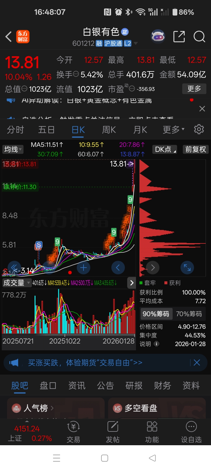 4块钱买的白银有色22买的晓程科技可想里面的主力利润多厚,只能羡慕了,你们感谢透