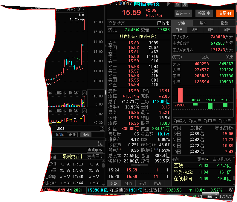 今天收盘比开盘涨了一分钱,看左图,收盘的红点是向上的,下图的SKDJ指标,白线头向上金叉,从资金看,超大和大单主力净流入1.71243亿,中单和小单散户,买入少卖出多。成主力流入散户流出。涨势