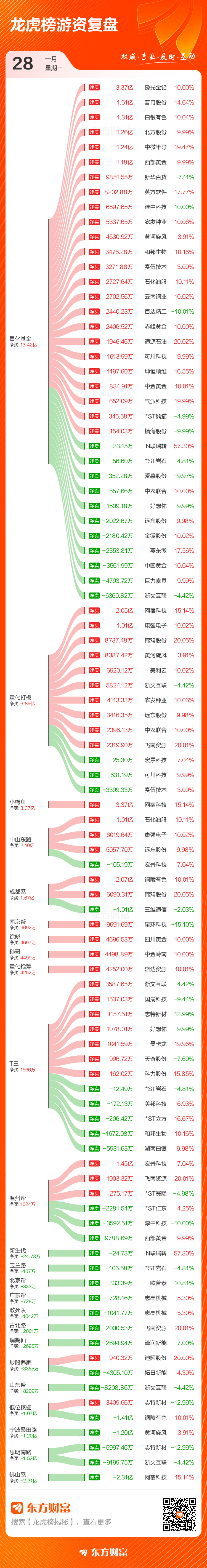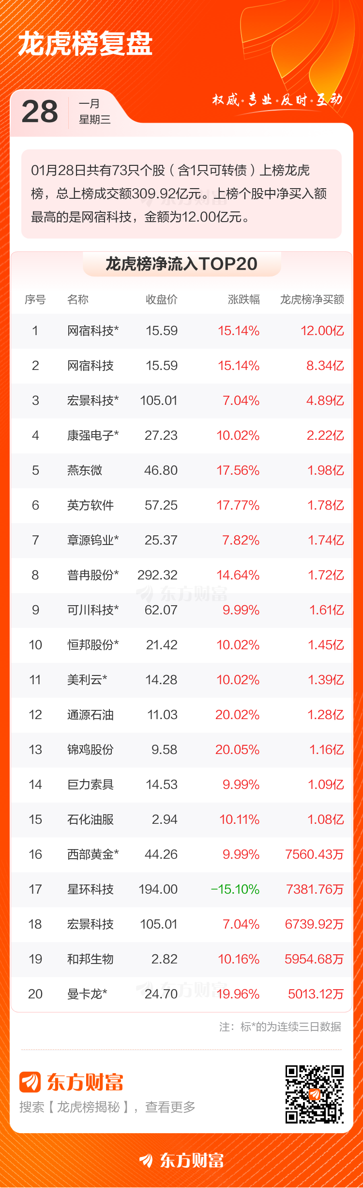 1月28日龙虎榜复盘:网宿科技净买额居首