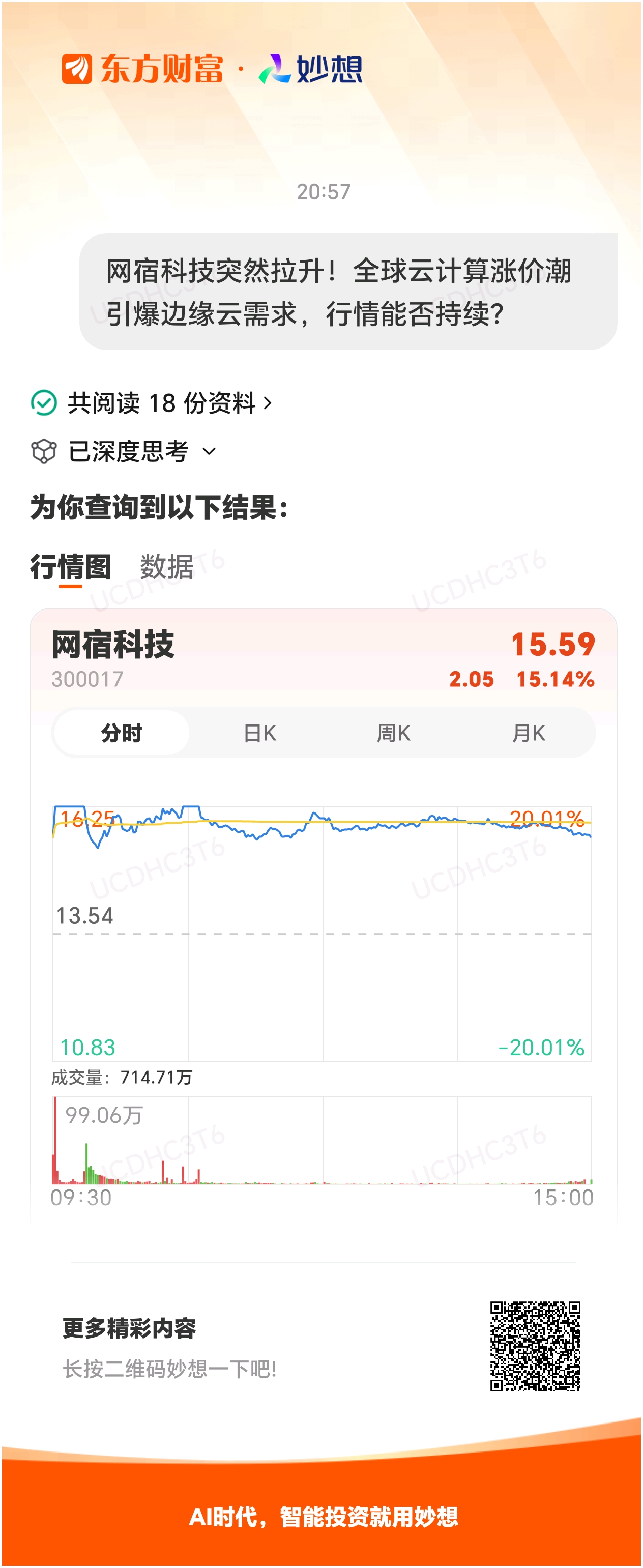 #@妙想,你怎么看?# 妙想一下:网宿科技突然拉升!全球云计算涨价潮引爆边缘云需求,行情能否持续?
