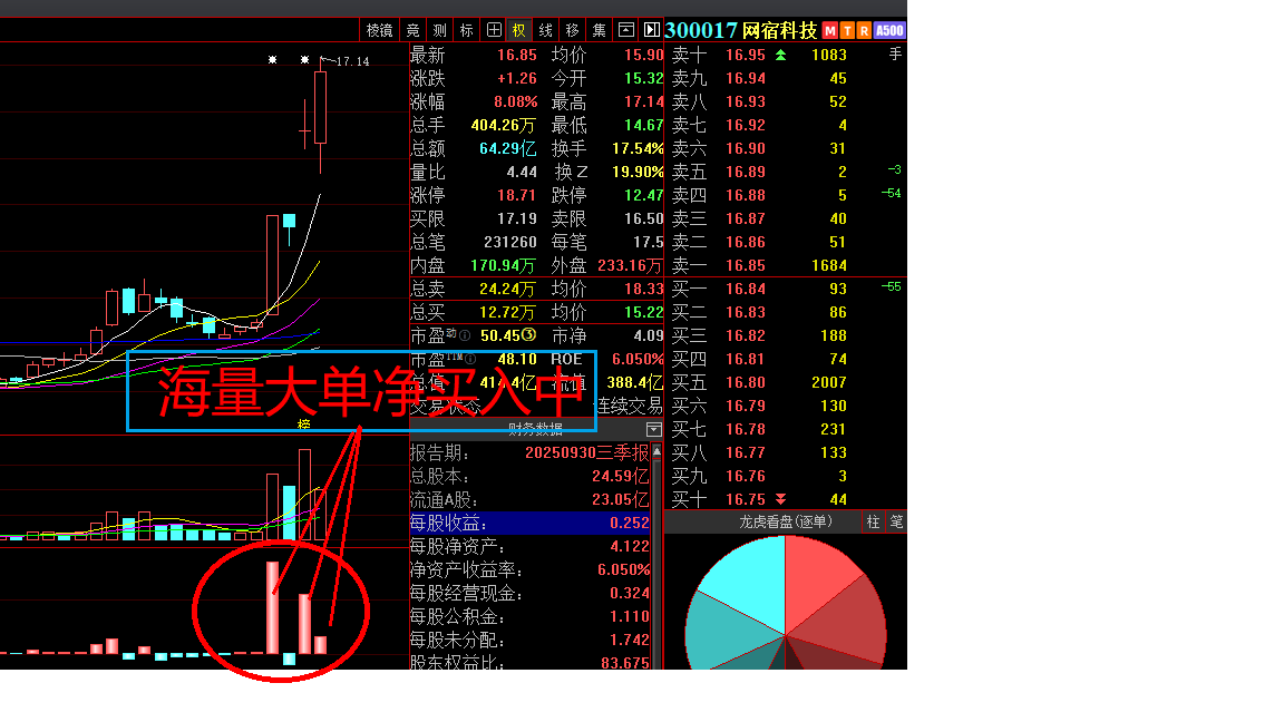 即时播报网宿科技最新高精度主动大单净买入数据(详图),供各位朋友、各位大佬们研究判断。