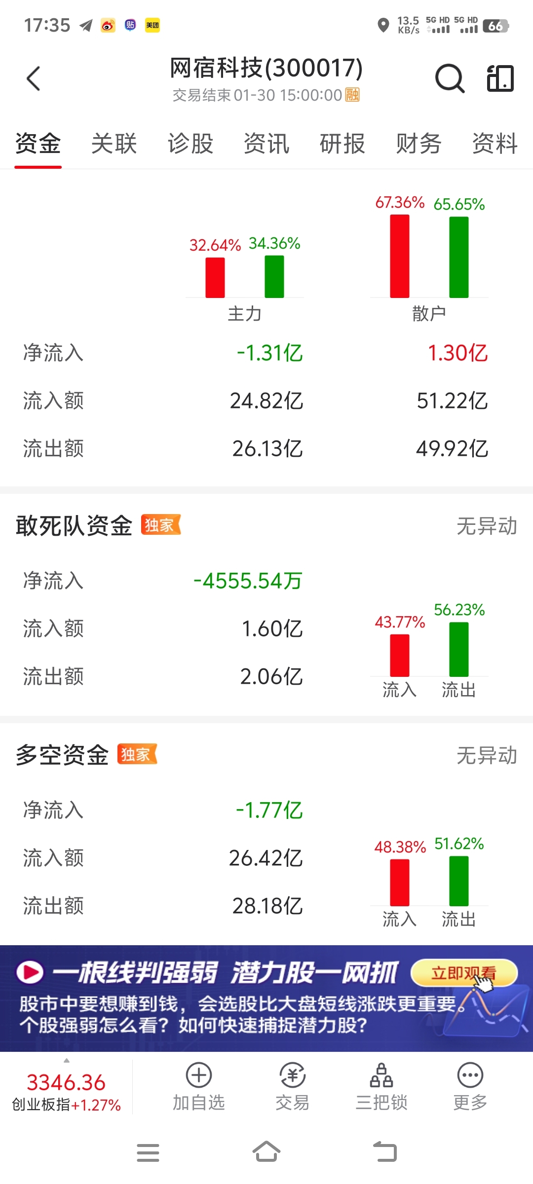 $网宿科技(SZ300017)$ 暗盘主力流出3亿多