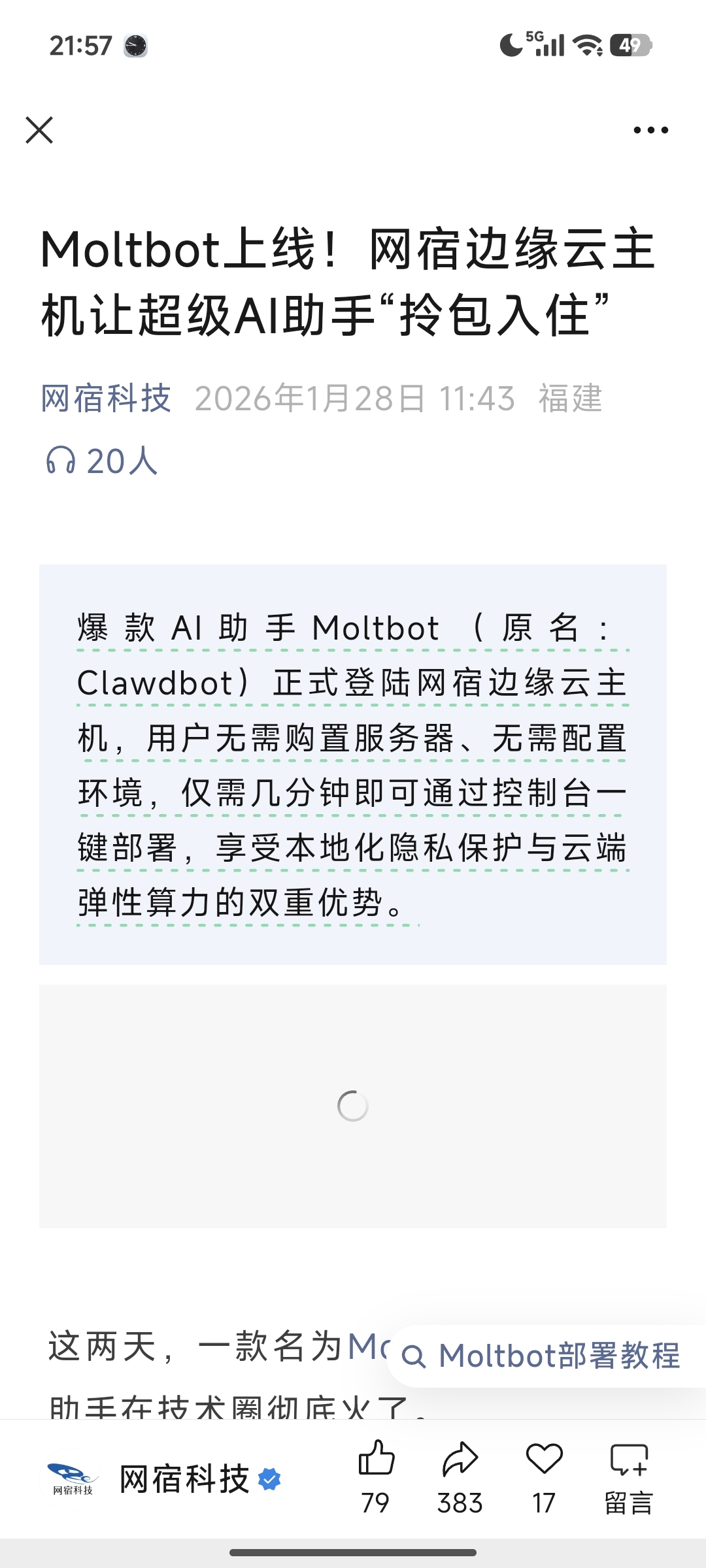 其一,公司官网披露的2800+全球节点覆盖70+国家,且2026年1月官宣上线Moltbot镜像实现一键部署,无需配置环境即可完成Agent部署,精准承接现象级产品的市场需求;