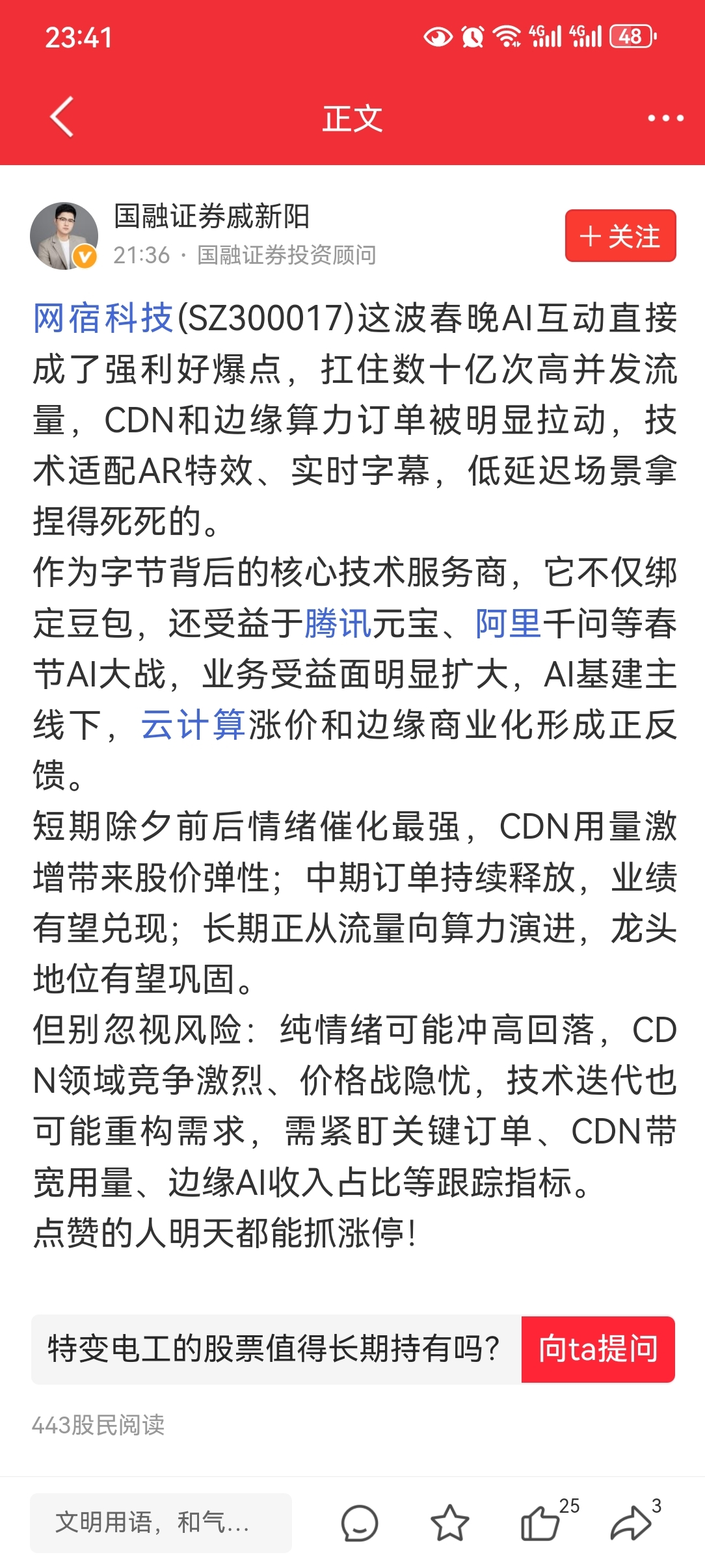 $网宿科技(SZ300017)$ 散户吹票我不怕,这些人吹票我真有点慌