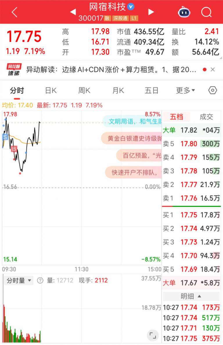 $网宿科技(SZ300017)$ 坚定持有只做T增加仓位,一股不减