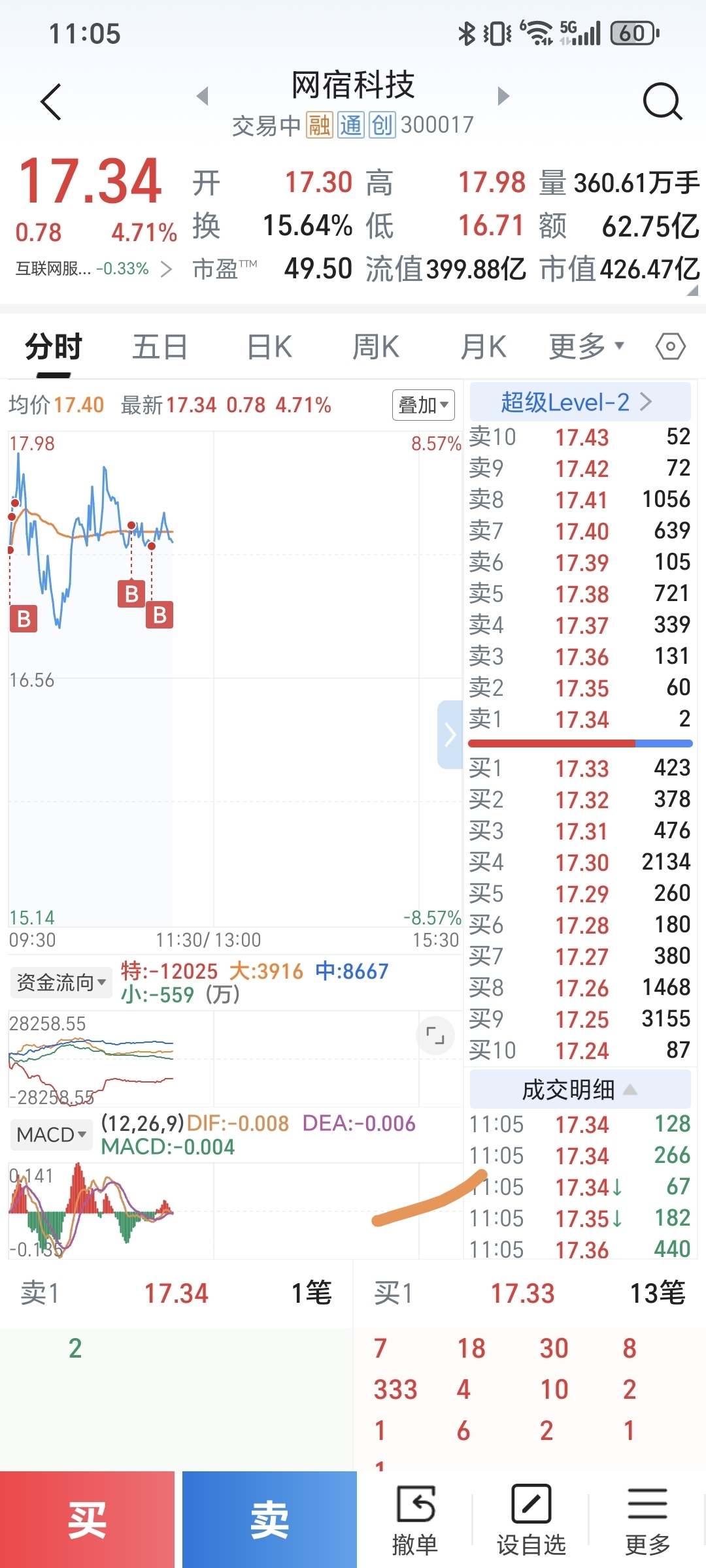 $网宿科技(SZ300017)$ 进了5成!看好今天出买点起飞!