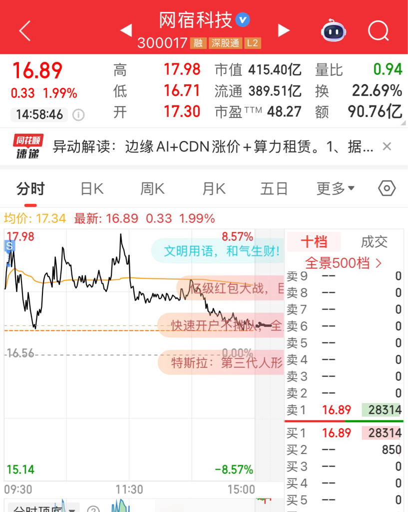 $网宿科技(SZ300017)$ 记录一下,竞价符合预期略低一点,开盘之后符合预期但是分歧比较大,不是很顺畅,所以就想好要卖了,冲高分批卖出均6.5%,整体操作符合盘前策略。#复盘记录#