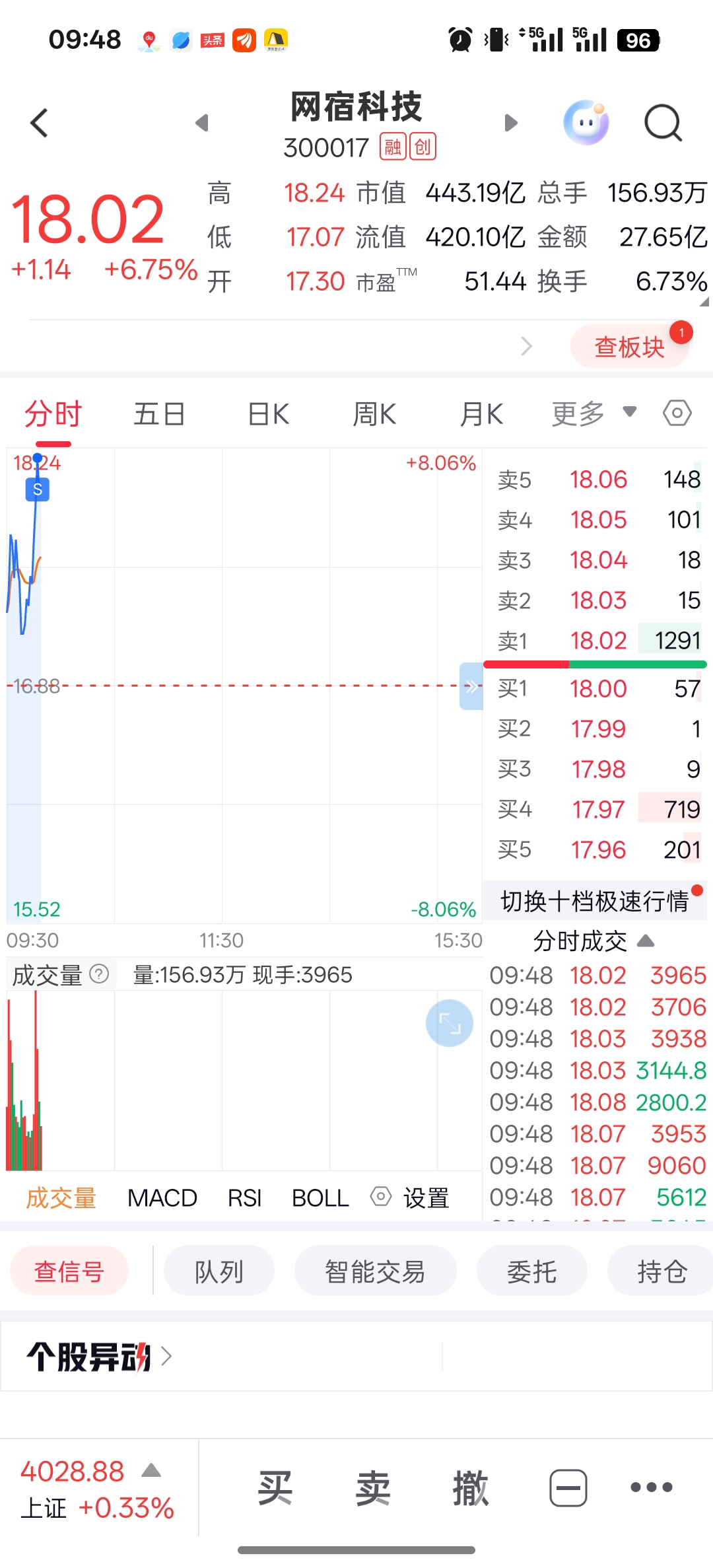 $网宿科技(SZ300017)$ 今天没人比我卖的高吧,哈哈哈