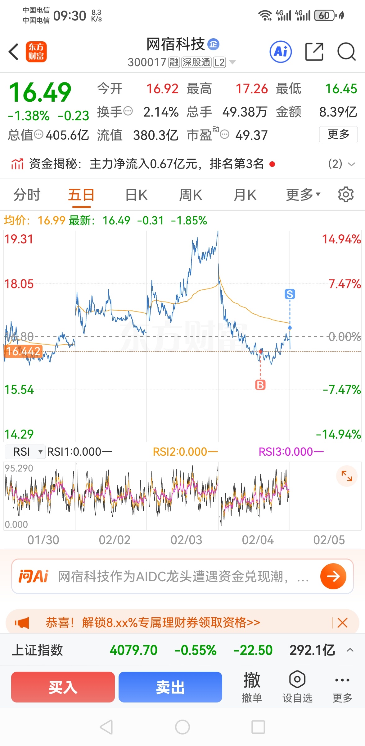 $网宿科技(SZ300017)$ 卖飞了,我擦,高开我还跑啥?