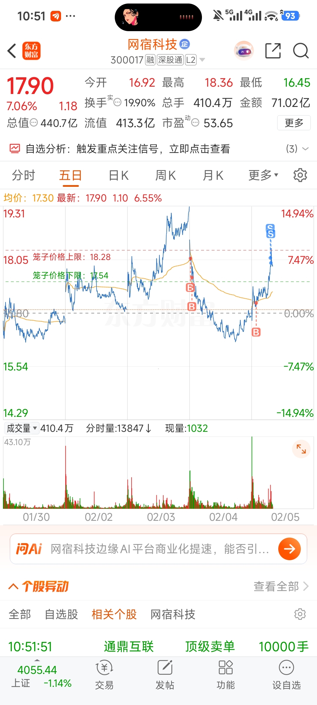 $网宿科技(SZ300017)$ 昨天抄底太高了先把成本降下来