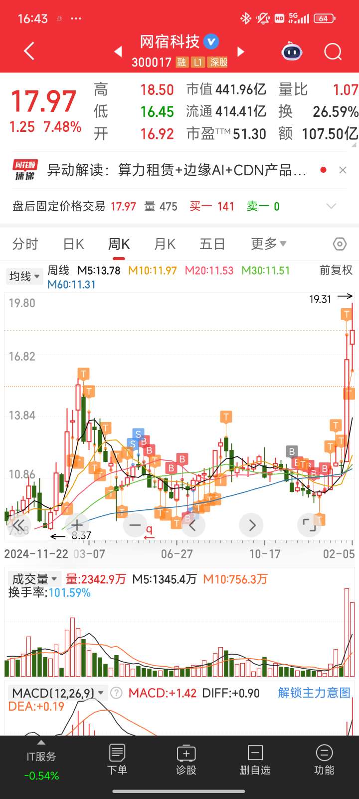 $网宿科技(SZ300017)$ 第一目标位30?