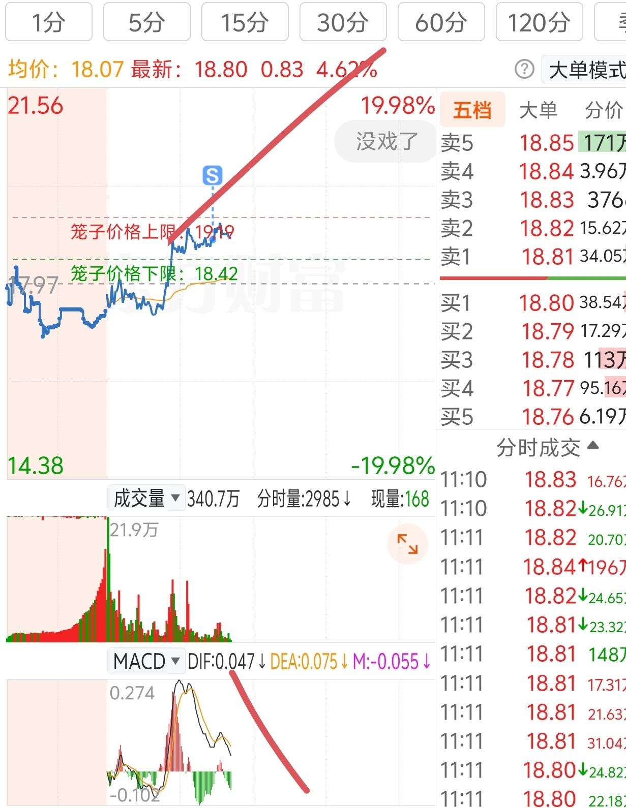 $网宿科技(SZ300017)$ 注意风险分时背离