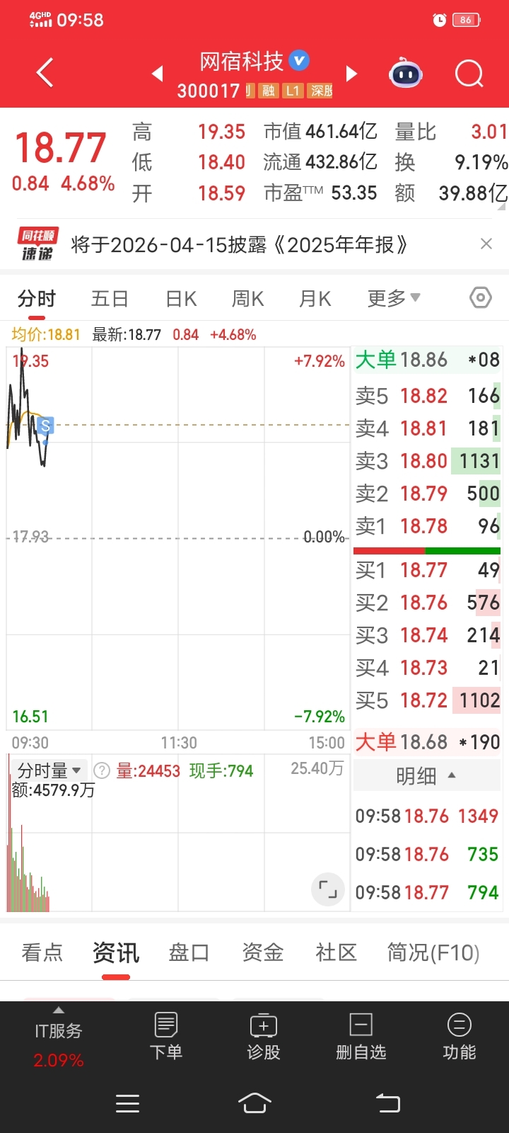 $网宿科技(SZ300017)$ 以后这种毛病要改改,冲高不卖,回下来才卖,每次都拍大腿!