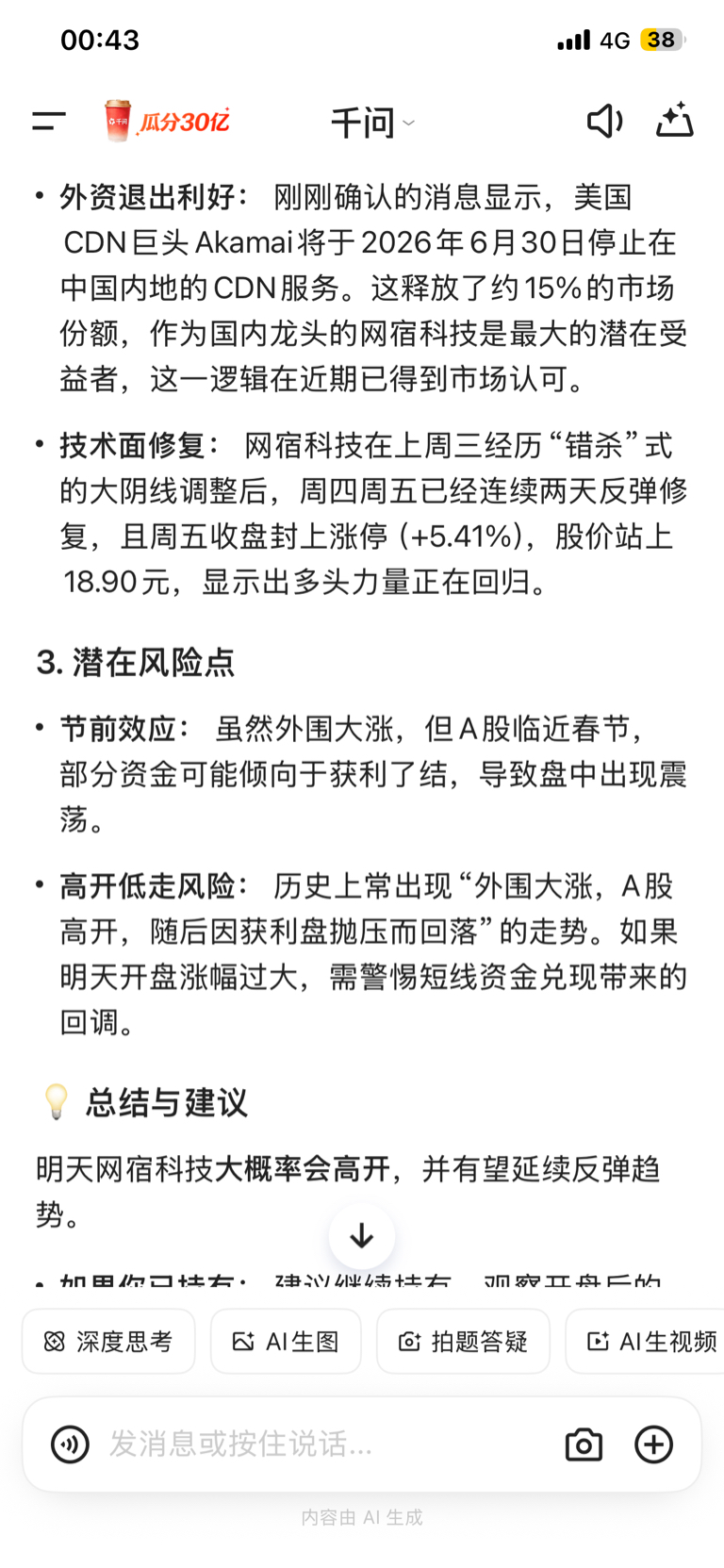 问了千问明天会高开,大家放心持有