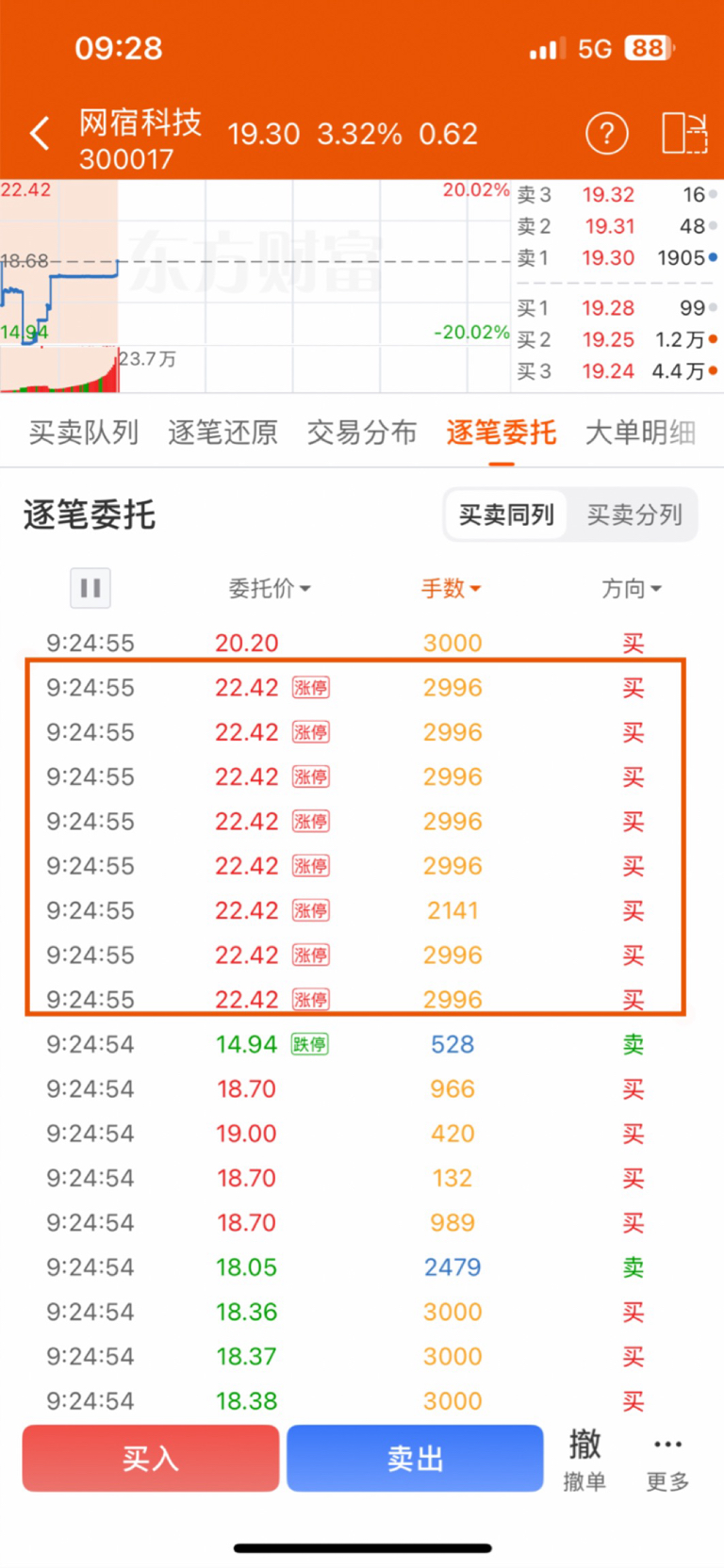 $网宿科技(SZ300017)$ 2996余哥来了,昨天前天都看到2996的买单