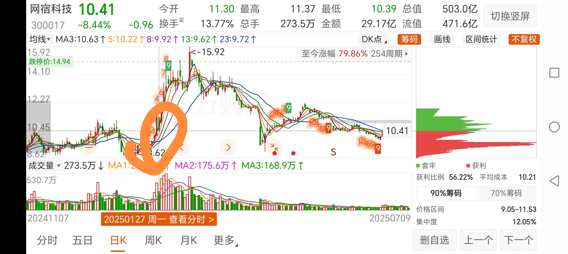 $网宿科技(SZ300017)$ 总感觉要走1月27号这天的行情了,同样是年底,最后一两天