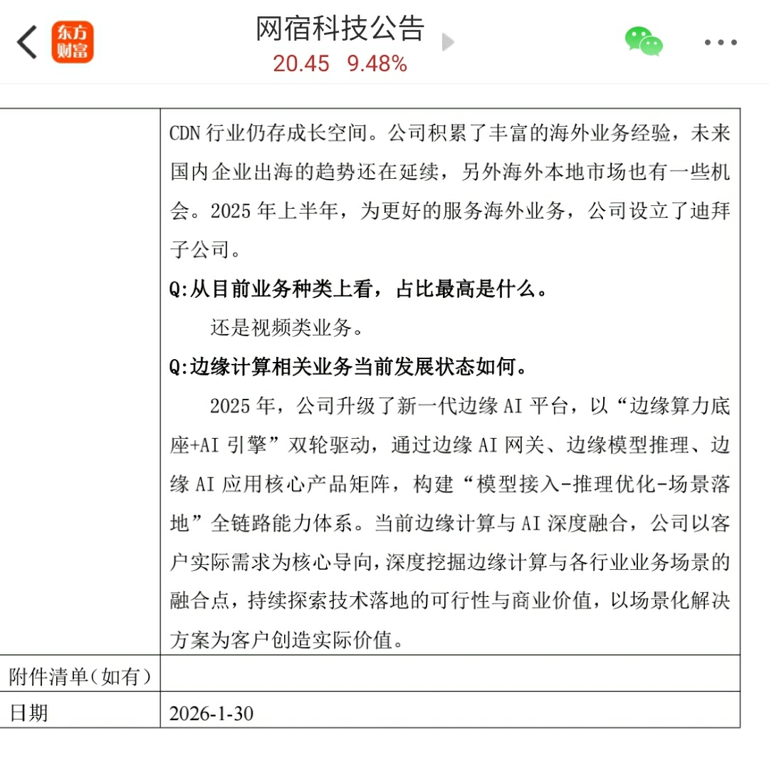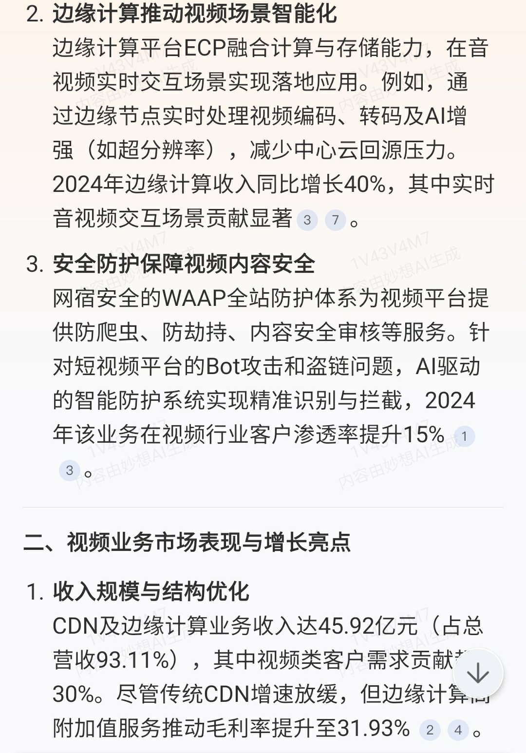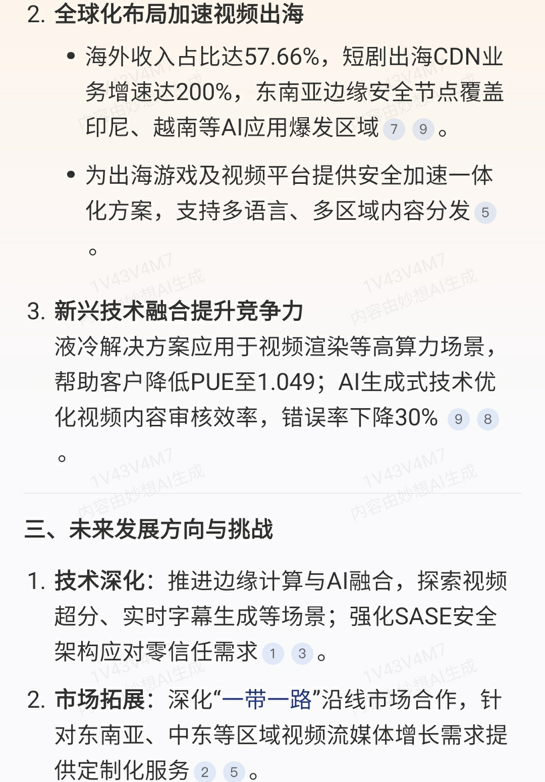 $网宿科技(SZ300017)$  公司视频类业务占比最高,贡献30%,海外收入占比57.66%,短剧出海CDN业务增速高达200%。