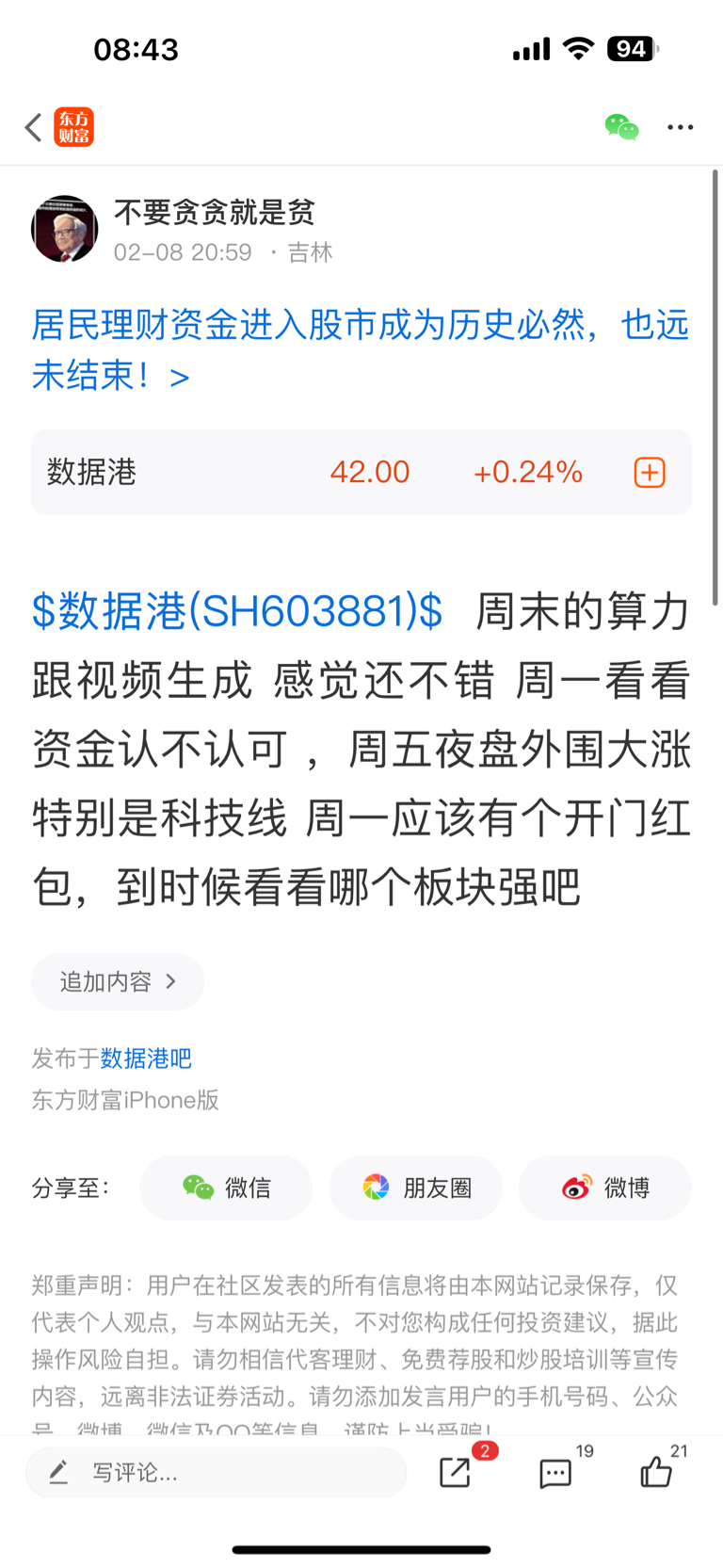温馨提示: 1.根据《证券法》规定,禁止编造、传播虚假信息或者误导性信息,扰乱证券市场;2.用户在本社区发表的所有资料、言论等仅代表个人观点,与本网站立场无关,不对您构成任何投资建议。用户应基于自己的独立判断,自行决定证券投资并承担相应风险。《东方财富社区管理规定》