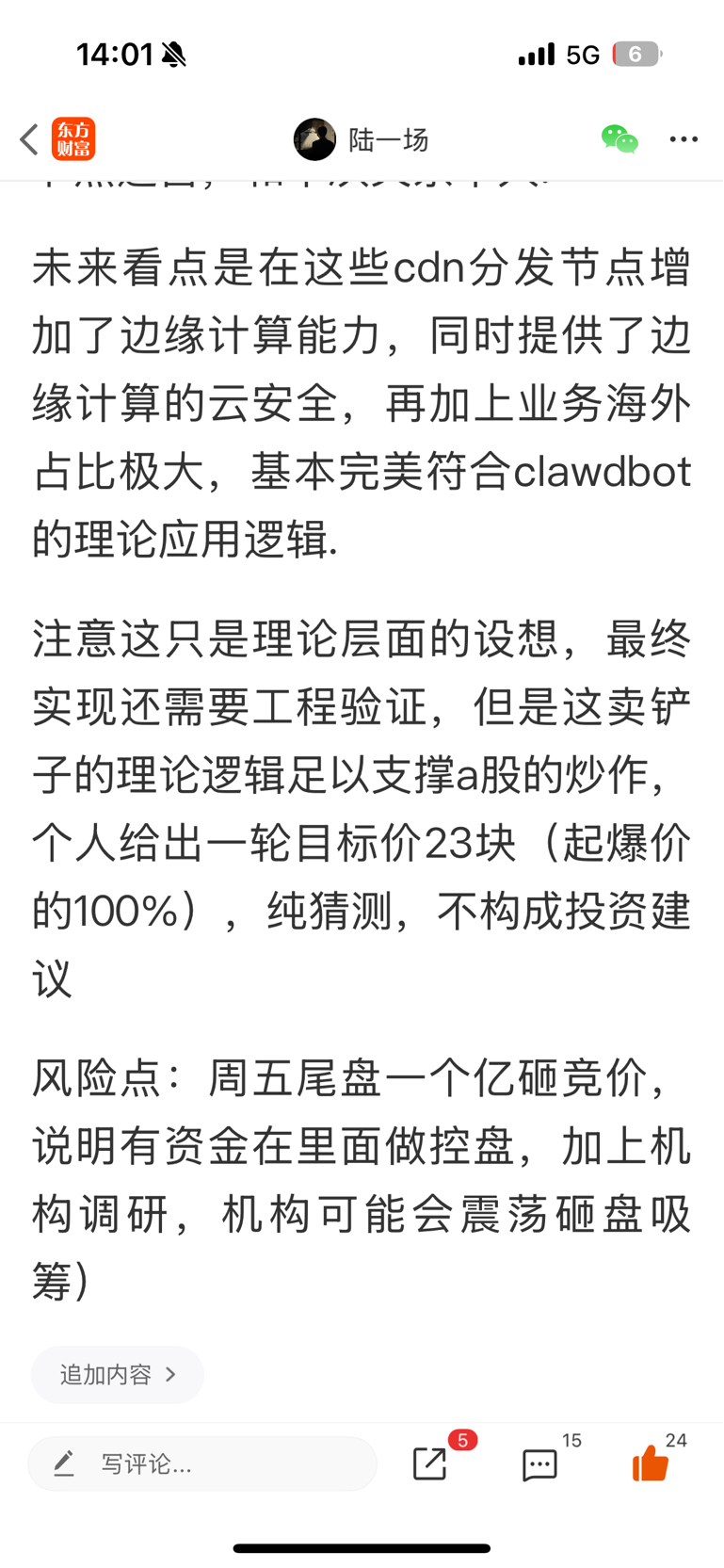 $网宿科技(SZ300017)$ 2.1号文章分享的网宿科技逻辑及目标价,当时说的23元目标价已达到了...