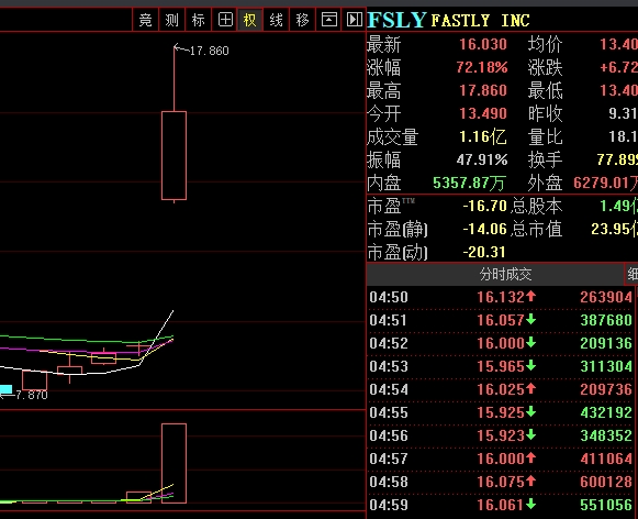 美国CDN算力股龙头FASTLY INC昨晚暴涨72.18%,国内CDN算力龙头是网宿科技。