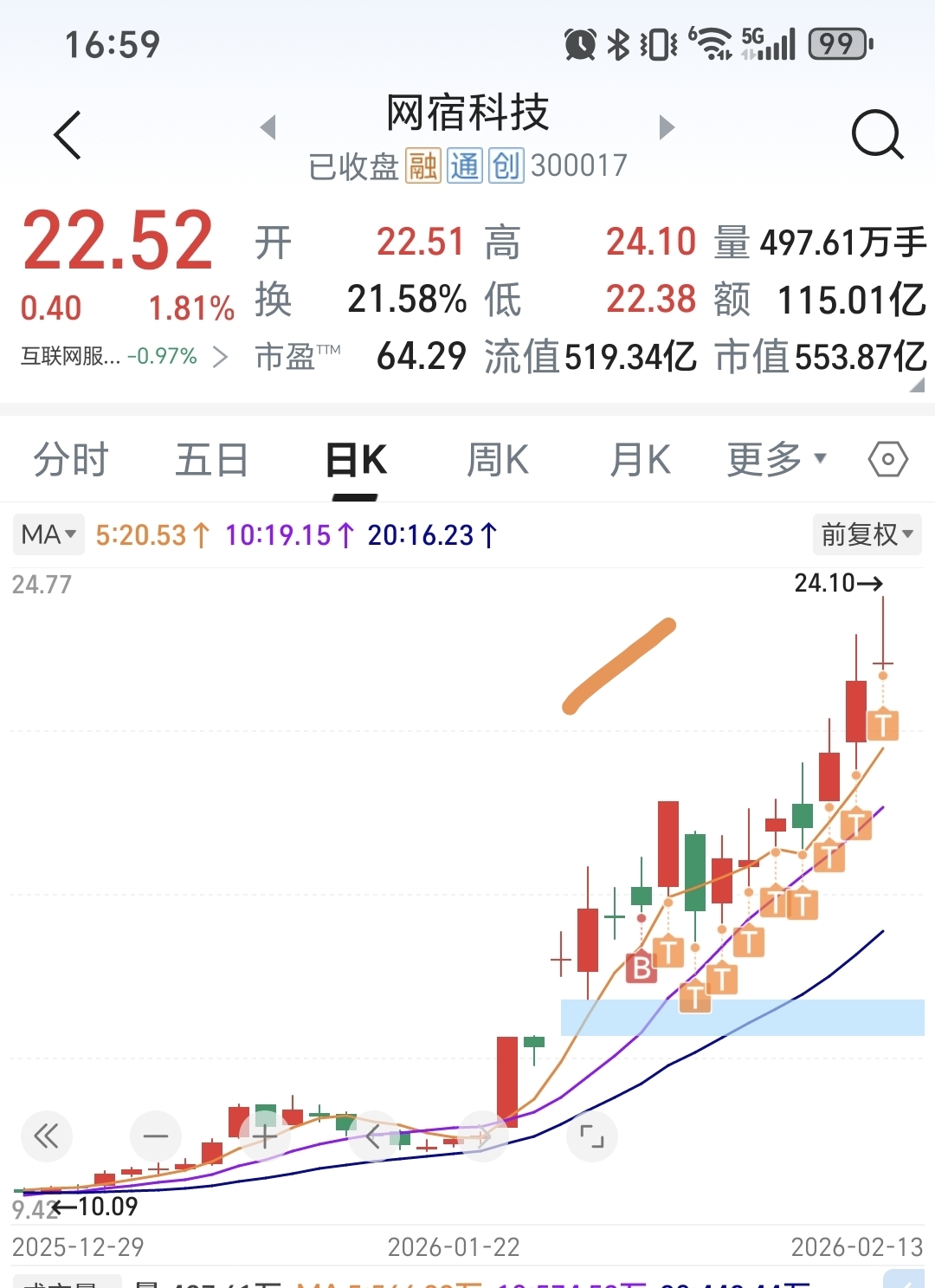 这两个月翻了2倍多了。跟上的应该都大肉了。2月4日,旗帜鲜明的说,网宿科技又抓一