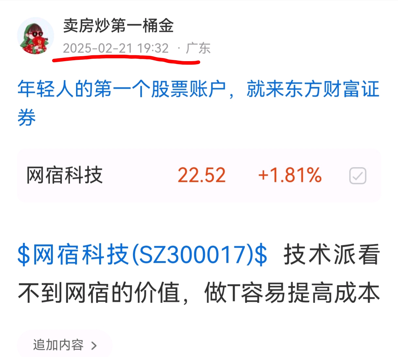 温馨提示: 1.根据《证券法》规定,禁止编造、传播虚假信息或者误导性信息,扰乱证券市场;2.用户在本社区发表的所有资料、言论等仅代表个人观点,与本网站立场无关,不对您构成任何投资建议。用户应基于自己的独立判断,自行决定证券投资并承担相应风险。《东方财富社区管理规定》