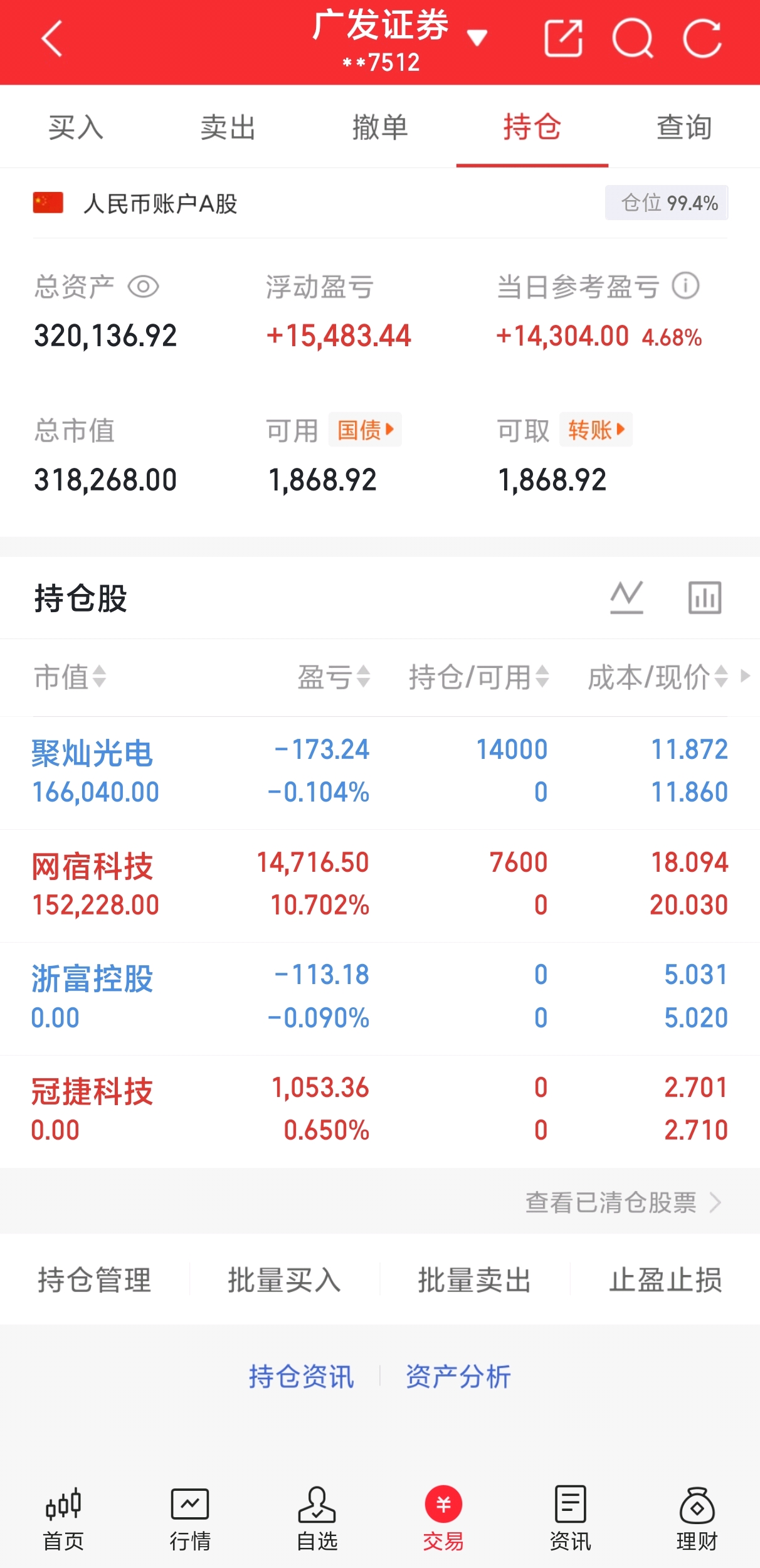 声明:这是我个人每天的实盘纪录,不够成操作建议,切勿跟风,否则后果自负!股市有风险,投资须谨慎!$网宿科技(SZ300017)$ $聚灿光电(SZ300708)$ $拓维信息(SZ002261)$