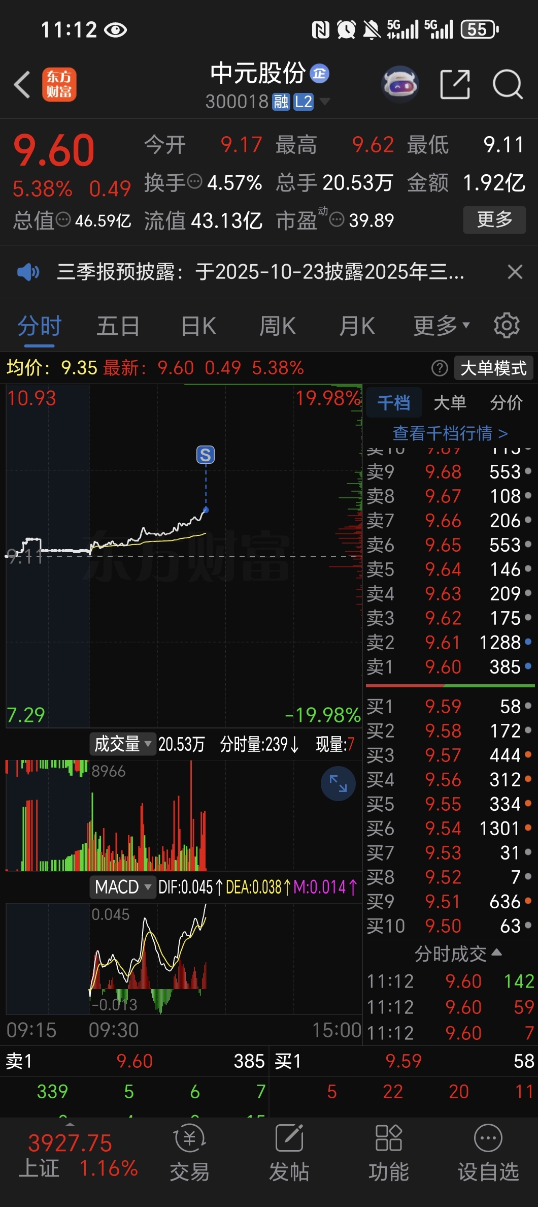 $中元股份(SZ300018)$ 感谢主力的节后红包~
